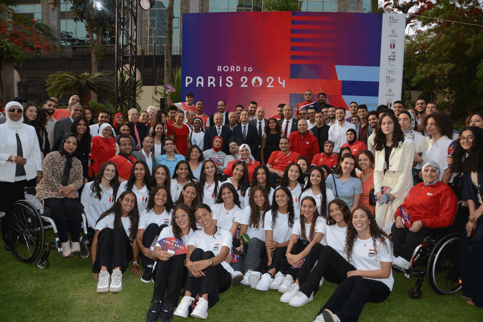 وأقيم حفل استقبال للبعثة في مقر السفارة الفرنسية بمصر بحضور دكتور حسام الدين مصطفي، رئيس اللجنة البارالمبية المصرية، والمهندس شريف العريان الأمين العام للجنة الأولمبية المصرية، والدكتور أشرف البجرمي، رئيس قطاع الرياضة بوزارة الشباب والرياضة ونائبا عن وزير الرياضة، والدكتور محمد الكردي، رئيس الادارة المركزية للاداء الرياضي بوزارة الشباب والرياضة، والدكتور عبد الأول محمد، مساعد الوزير لشئون البطولة، بالإضافة إلى أعضاء اللجنة الأولمبية والبارالمبية ورؤساء الاتحادات المصرية وعدد كبير من اللاعبين المتأهلين لدورة الالعاب الاولمبية والبارالمبية المقبلة.