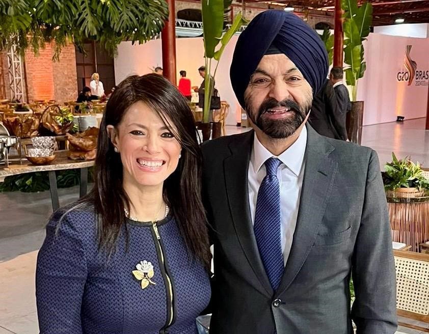 التقت الدكتورة رانيا المشاط، وزيرة التخطيط والتنمية الاقتصادية والتعاون الدولي ومحافظ مصر لدى مجموعة البنك الدولي، أجاي بانجا، رئيس البنك، وذلك ضمن فعاليات مشاركتها في اجتماع وزراء التنمية لمجموعة العشرين التي انعقدت بمدينة ريو دي جانيرو البرازيلية، حيث يعد اللقاء هو الأول عقب تولي الحقيبة الجديدة.