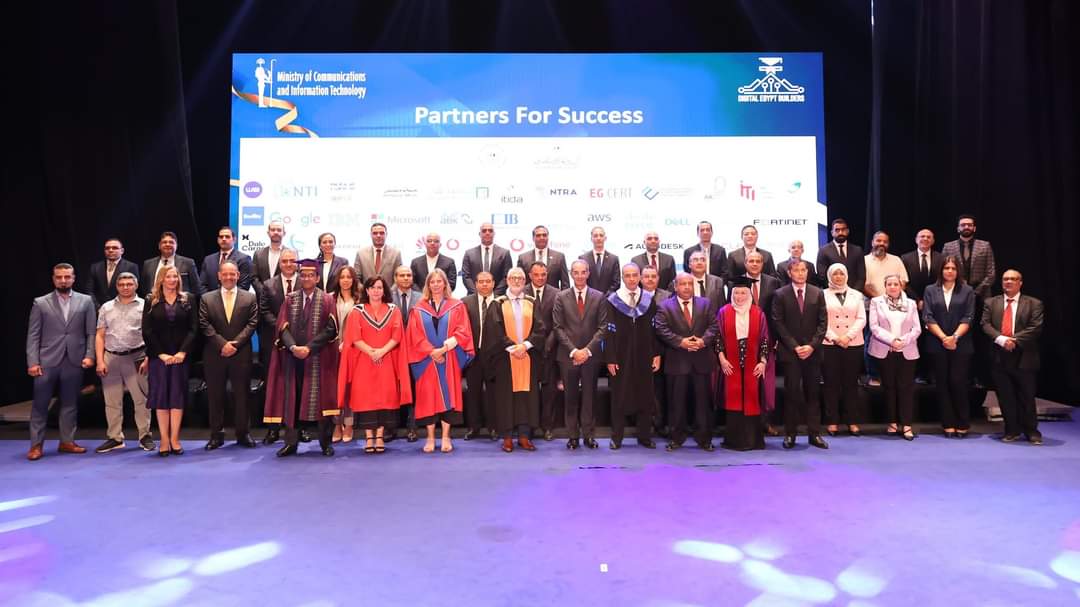 شهد الدكتور عمرو طلعت وزير الاتصالات وتكنولوجيا المعلومات فعاليات حفل تخرج الدفعة الثالثة من طلاب مبادرة بُناة مصر الرقمية والتى أطلقتها وزارة الاتصالات وتكنولوجيا المعلومات؛ حيث تم منح درجة الماجستير المهنى لعدد 258 طالبا فى تخصصات الذكاء الاصطناعى وعلوم البيانات، والروبوتات والأتمتة، والأمن السيبرانى، والفنون الرقمية، وتحليلات الأعمال بالتعاون مع جامعات أوتاوا وكوينز الكندية، وكولدج كورك الأيرلندية، وسينز الماليزية؛ وذلك خلال الحفل الذى أقيم فى قاعة الاحتفالات الكبرى بجامعة القاهرة بحضور اللواء عبد الرحمن شلش وكيل وزارة الشباب والرياضة ورئيس الإدارة المركزية للمدن الشبابية نيابة عن الدكتور أشرف صبحى وزير الشباب والرياضة، والسفير لوى دوما سفير كندا لدى مصر، والسفيرة رفيدة عبد العزيز قائم بالأعمال سفارة ماليزيا لدى مصر، والدكتور أحمد رجب نائب رئيس جامعة القاهرة لشئون التعليم والطلاب، وعدد من ممثلى كل من الجامعات الدولية، والشركات المحلية والعالمية المشاركة فى المبادرة، وأهالى الخريجين.