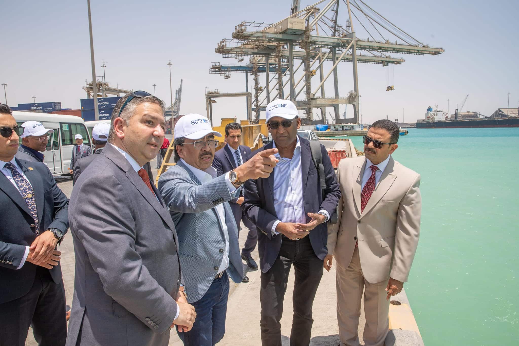 وعقب اللقاء توجه الوفد إلى زيارة ميدانية إلى ميناء السخنة والأرصفة العاملة به وأعمال التطوير التي تجري بالميناء حالياً، حيث يتم إنشاء 5 أحواض جديدة، وأرصفة بطول 18كم لتصبح إجمالي أطوال الأرصفة بالميناء 23 كم، وبعمق 18م، وإنشاء ساحات التداول بمساحة 8.6 كم2 لتصبح إجمالي الساحات 10.6 كم2.