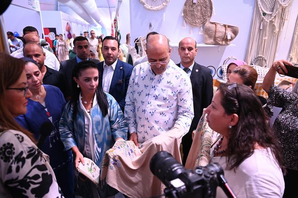 واستمرارًا لجهود دعم الأسر وتمكينهم اقتصاديًا، استقبلت الدكتورة مايا مرسي وزيرة التضامن الاجتماعي، محمد جبران وزير العمل بمعرض تنمية الأسرة المصرية، والذي تنظمه وزارة التضامن الاجتماعي بالشراكة مع المجلس القومي للمرأة، ضمن فعاليات النسخة الثانية من مهرجان العلمين الجديدة، وقاما الوزيران بجولة داخل أروقة المعرض الذي يشهد مشاركة 76 عارضاً ينقسمون إلى 54 عارضًا من الأسر المنتجة لوزارة التضامن الاجتماعي، إلى جانب مشاركة 22 من رائدات الأعمال بالمجلس القومي للمرأة بهدف توفير فرص تسويقية لمشروعاتهن الحرفية.