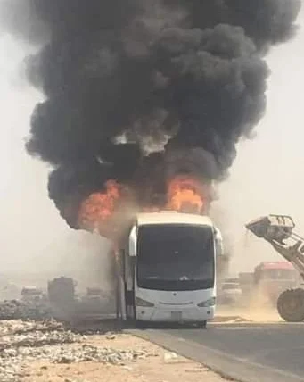 وأسفر الحادث عن تفحم الأتوبيس بالكامل،دون إصابات أو خسائر في الأرواح