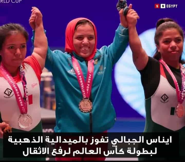 أحرزت إيناس الجبالي لاعبة منتخب مصر لرفع الأثقال البارالمبي الميدالية الذهبية في منافسات وزن 41 كجم، في كأس العالم لرفع الأثقال البارالمبي المقامة في المكسيك ، في آخر محطات التأهيل لدورة الألعاب البارالمبية باريس 2024.