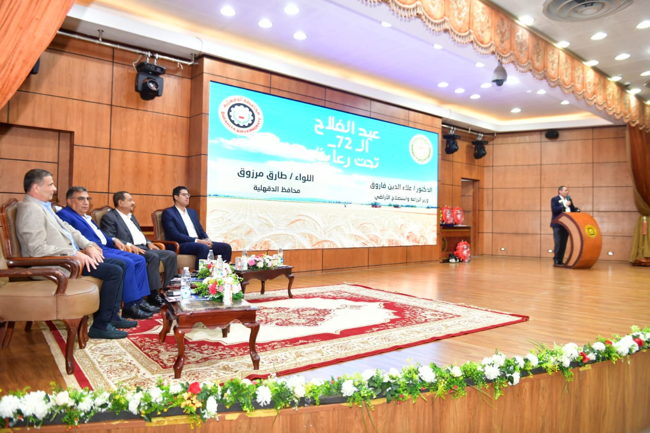 شهد اللواء طارق مرزوق محافظ الدقهلية والأستاذ علاء فاروق وزير الزراعة احتفالية المحافظة بعيد الفلاح ال 72 من داخل قاعة المؤتمرات الكبري بديوان عام المحافظة وقاموا بتكريم عدد من المزارعين .