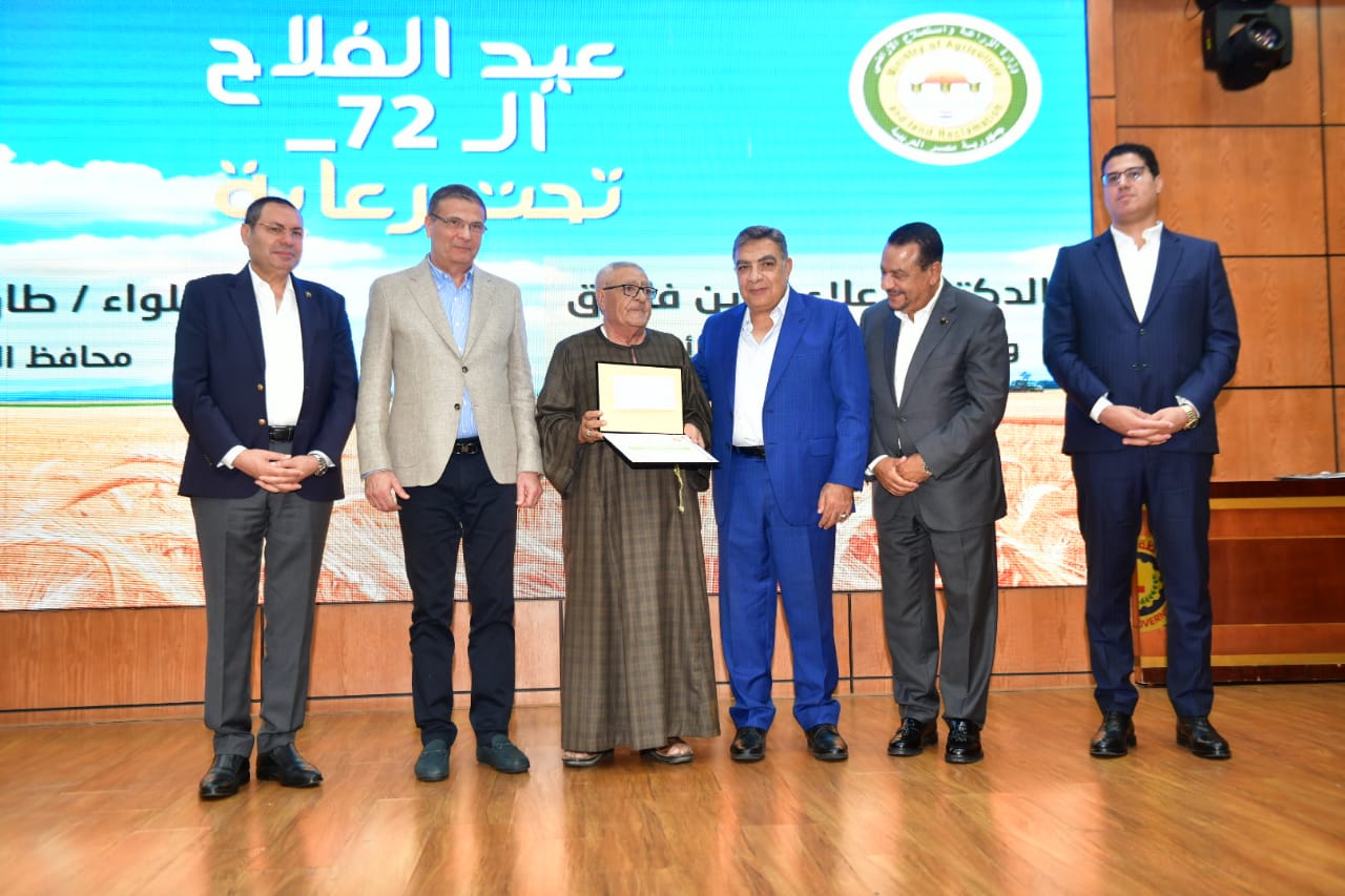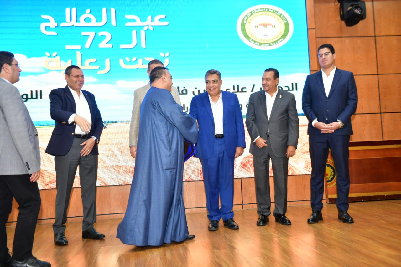 ومن جانبه توجه الأستاذ علاء فاروق وزير الزراعة واستصلاح الأراضي، بالتحية والشكر والتقدير الى فلاحي مصر باعتبارهم مسيرة العطاء والمسئولين الاساسيين عن الأمن الغذائي، ودعم الاقتصاد، لافتا الى ان مصر تعتمد عليهم، بشكل كبير، خاصة في ظل تلك التحديات التي تواجه قضية الأمن الغذائي، من ندرة المياه والتغيرات المناخية.