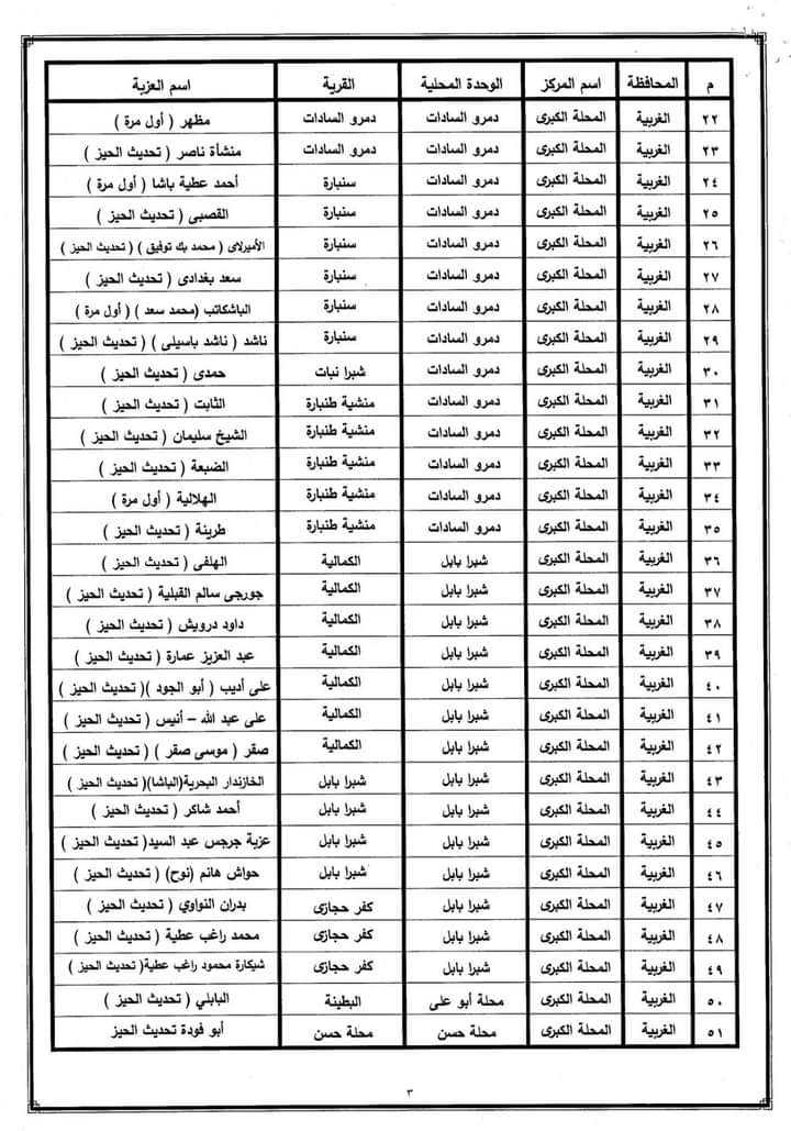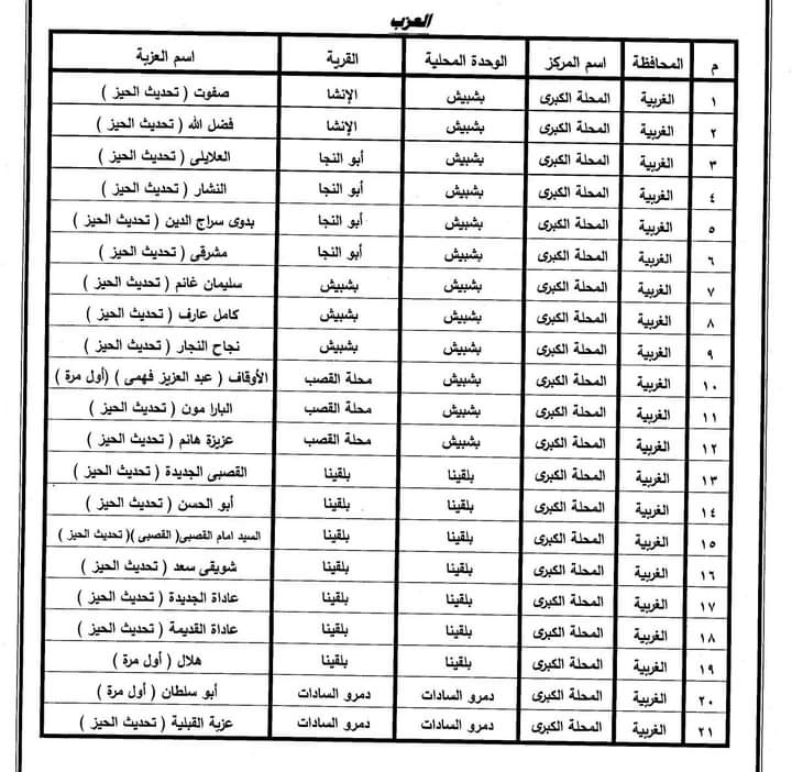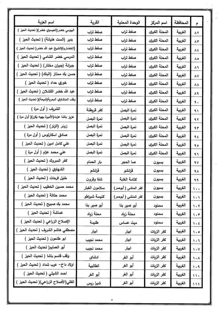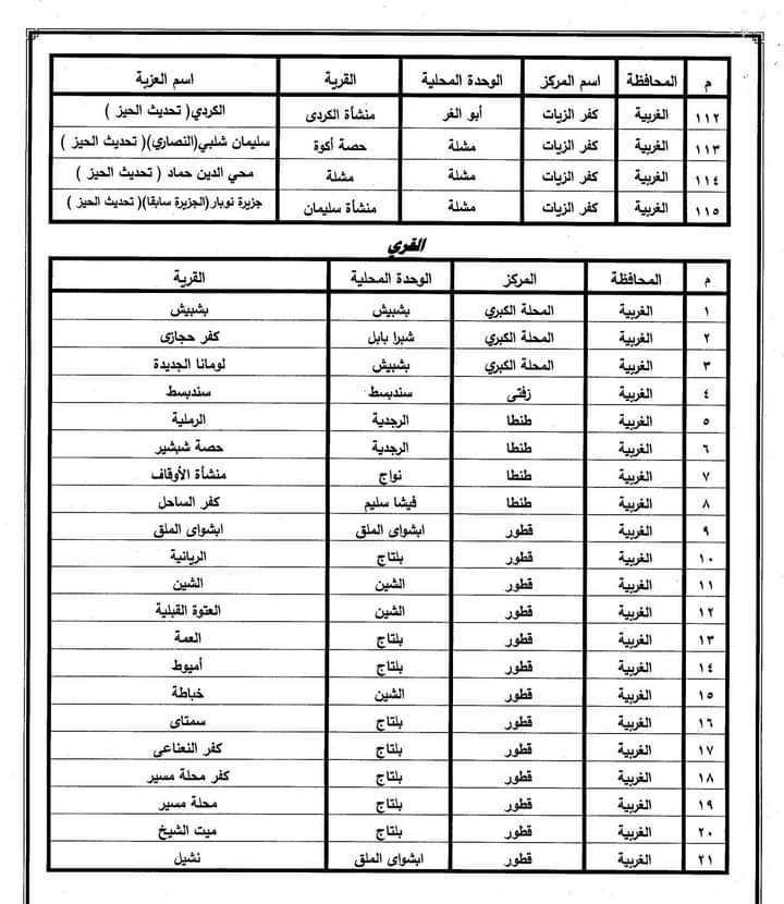 وافق المجلس التنفيذي لمحافظة الغربية في جلسة اليوم، برئاسة اللواء أشرف الجندي محافظ الغربية، على اعتماد الأحوزة العمرانية لعدد 21 قرية تابعة لمراكز المحلة الكبرى ، زفتى ،طنطا ، قطور ، وعدد 115 عزبة تابعة لمراكز (المحلة الكبرى ، سمنود ،بسيون ، كفر الزيات).