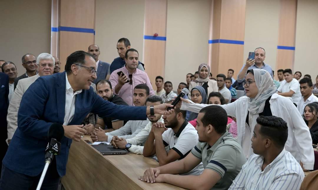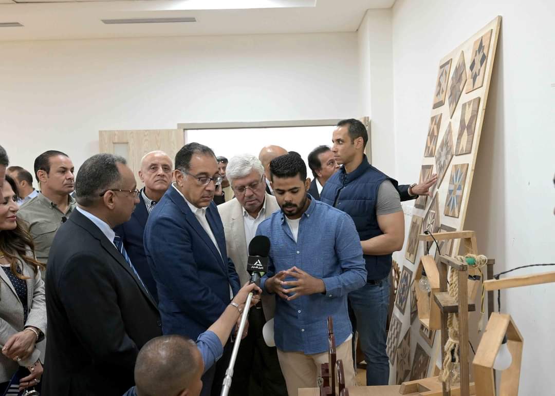 وحرص الدكتور مصطفى مدبولي، على معرفة الفرص التي تتيحها الجامعة للفتيات، حيث أشارت إحدى الفتيات إلى أنها من محافظة أسوان، وان الجامعة تتيح لهن دراسة أسس التصميم كما تؤهلهم لمراحل متقدمة تصل إلى التنفيذ، كما توفر الجامعة برامج لتعليم السلامة والصحة المهنية، وهي تخصص مهم بالجامعة، بينما أشار أحد الشباب إلى أن الجامعة تتيح للشباب فرصاً للتدريب العملي في الورش، واستعرض جانباً من فرص التدريب التي تقدمها الجامعة، في مجالات مهمة تساعد الطلاب في تهيئة كافة الفرص، وتؤهلهم لفرص العمل.