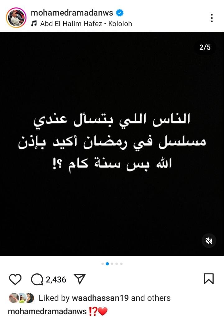 وعلق قائلا:” الناس اللي بتسال عندي مسلسل في رمضان أكيد بإذن الله بس سنه كام؟”.