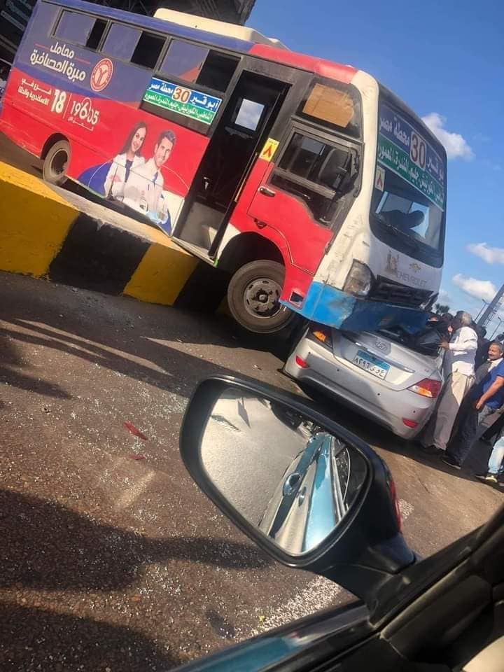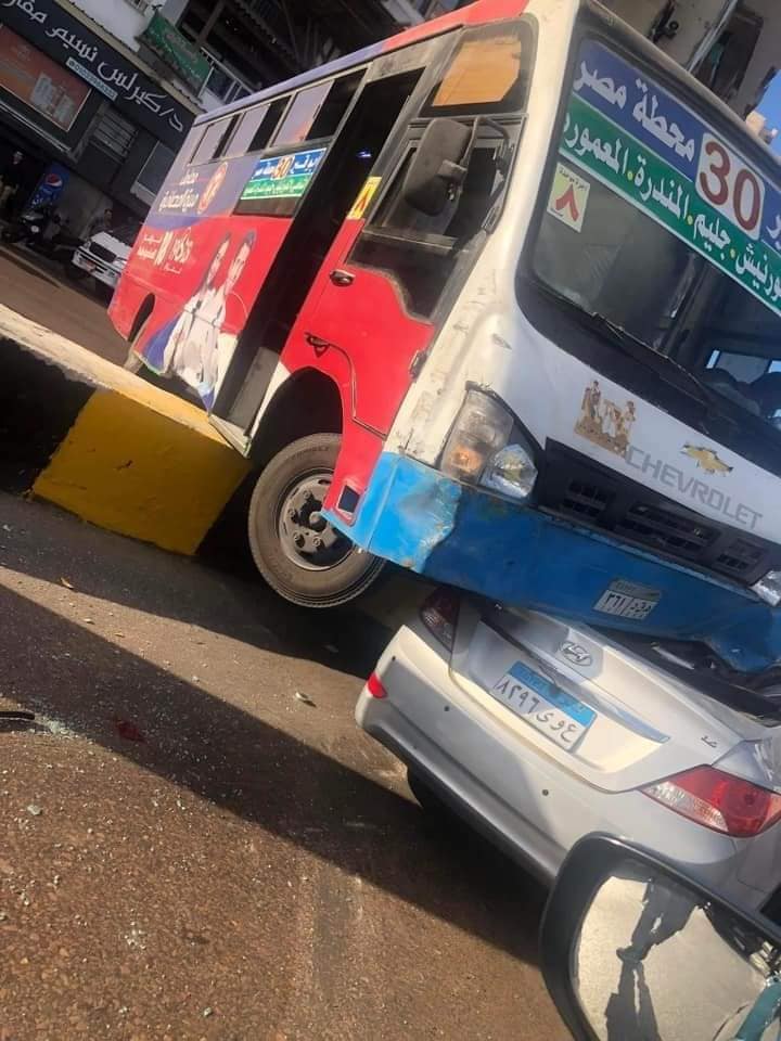 وانحراف أتوبيس نقل عام عن مساره، في أثناء سيره على كورنيش منطقة جليم بالإسكندرية، وتخطى الرصيف الفاصل بين الاتجاهين، ودهس سيارة ملاكي.