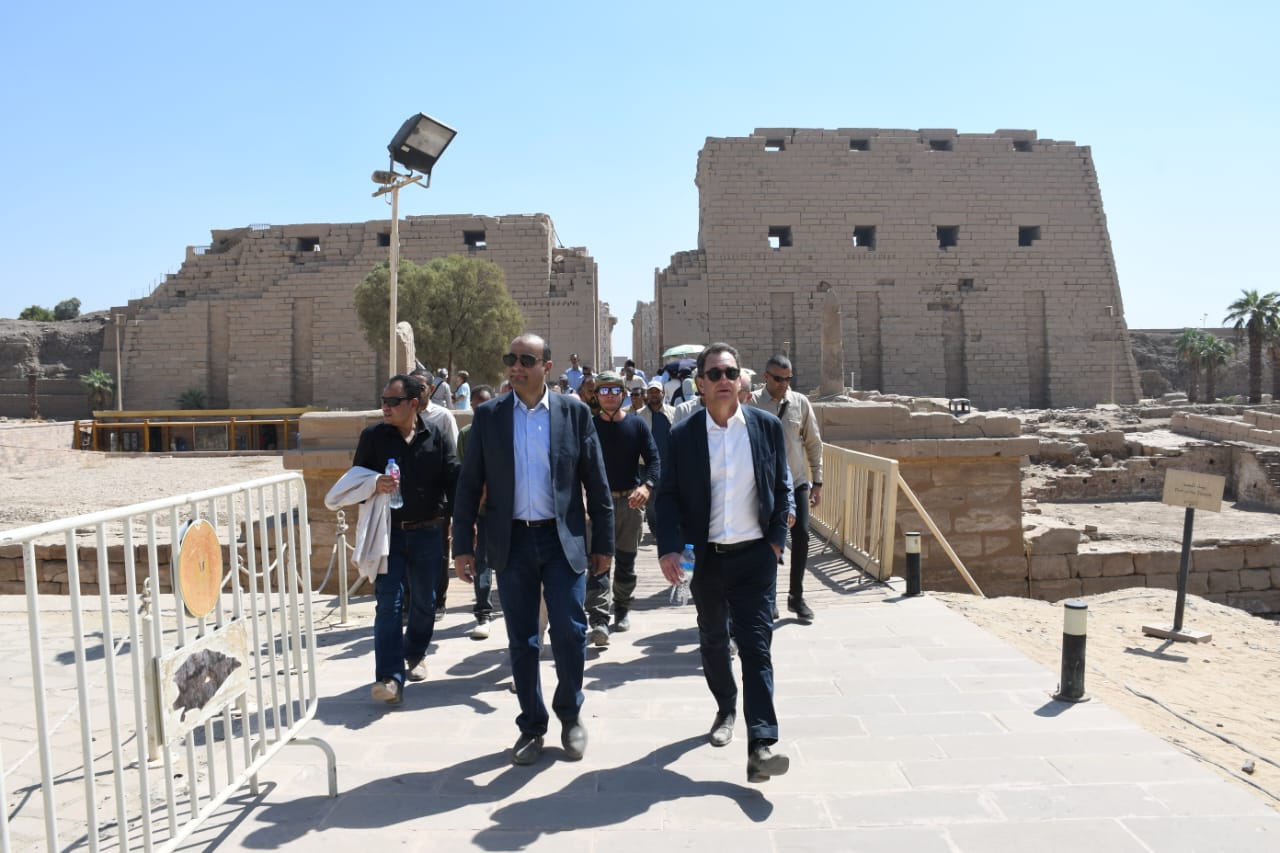 في إطار حرص وزارة السياحة والآثار ممثلة في المجلس الأعلى للآثار على متابعة أعمال الترميم الجارية بالمواقع الأثرية بمختلف أنحاء الجمهورية، قام الدكتور محمد إسماعيل خالد الأمين العام للمجلس الأعلى للآثار، بجولة تفقدية بعدد من المواقع الأثرية بمحافظتي الأقصر، وذلك بمرافقة المهندس عبد المطلب ممدوح محافظ الأقصر، والسفير إيريك شوفاليه السفير الفرنسي بالقاهرة، لمتابعة آخر تطورات الأعمال التي قام بها المركز المصري الفرنسي لدراسة معابد الكرنك CFEETK خلال العام الماضي.
