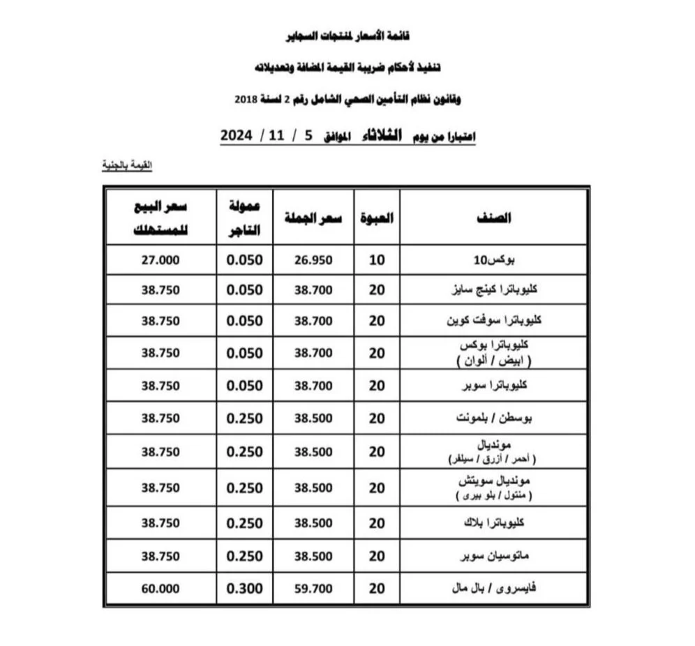زيادة أسعار السجائر الكليوباترا بدءًا من اليوم