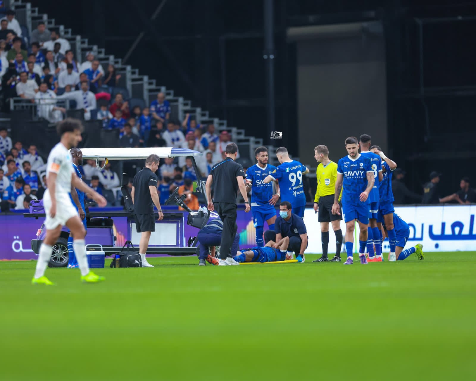 تعرض لاعب الفريق الأول لكرة القدم بنادي الهلال سالم الدوسري، لإصابة قوية أثناء مشاركته أمام الاتفاق، في إطار منافسات الجولة العاشرة بالدوري السعودي.