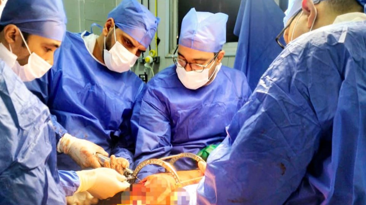 الحادث أدى إلى كسر مضاعف مفتت بأسفل عظمة الفخذ و الركبة اليمنى مع فقدان جزء من عظمة الفخذ وكذلك كسر بالساق اليمنى للمريض، والتي كانت تعرضت لكسر منذ عامين تم تثبيته بواسطة مسمار نخاعي تشابكيـ وقد أسفر الحادث الجديد عن اعوجاج المسمار.