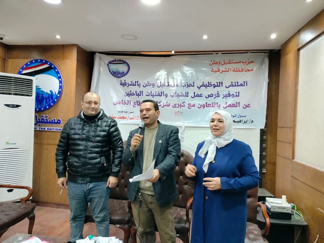 نظمت أمانة حزب مستقبل وطن بمحافظة الشرقية الملتقى التوظيفي الأول للشباب من الحاصلين على المؤهلات المتوسطة (حملة الدبلومات صناعي – تجاري – زراعي) لتوظيفهم في القطاع الخاص وذلك في أرشيف إحدى البنوك المصرية بحضور النائب الدكتور محمد سليم عضو مجلس الشيوخ وأمين الحزب بالشرقية والدكتورة زينب فهيم أمينة المرأة والنائبة هند حازم عضو مجلس النواب أمين ذوي الإعاقة والدكتورة روح الفؤاد محمد أمين الإعلام وإبراهيم نجاح مسؤول التوظيف بالحزب.