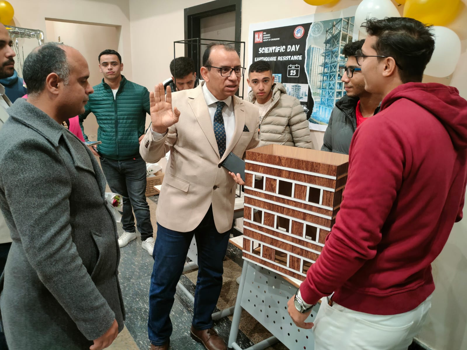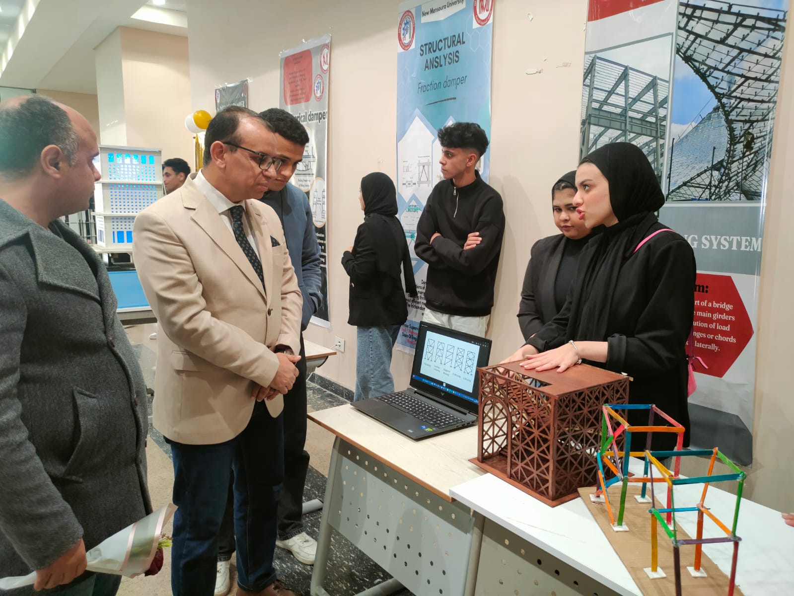 طلاب قسمي الهندسة المدنية والهندسة المعمارية بجامعة المنصورة الجديدة يبدعون في تطبيقات مقاومة الزلازل