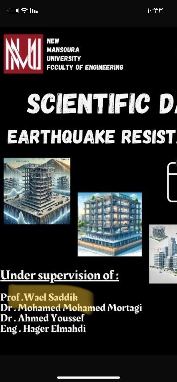 تحت رعاية أ.د. معوض الخولي، رئيس جامعة المنصورة الجديدة، و رياده أ.د. وائل صديق، عميد كلية الهندسة، و إشراف أ.م.د. سارة البهلول، مدير البرامج، ود. محمد مرتجى ود. أحمد يوسف، محاضري مقرري تحليل الإنشاءات وميكانيكا الإنشاءات، نظّم طلاب المستوى الأول لبرامج “هندسة العمارة البيئية وتكنولوجيا البناء” و**”هندسة وتكنولوجيا تنفيذ الأعمال المدنية”** اليوم العلمي لمقاومة الزلازل في المنشآت، وذلك ختامًا للفصل الدراسي الأول.