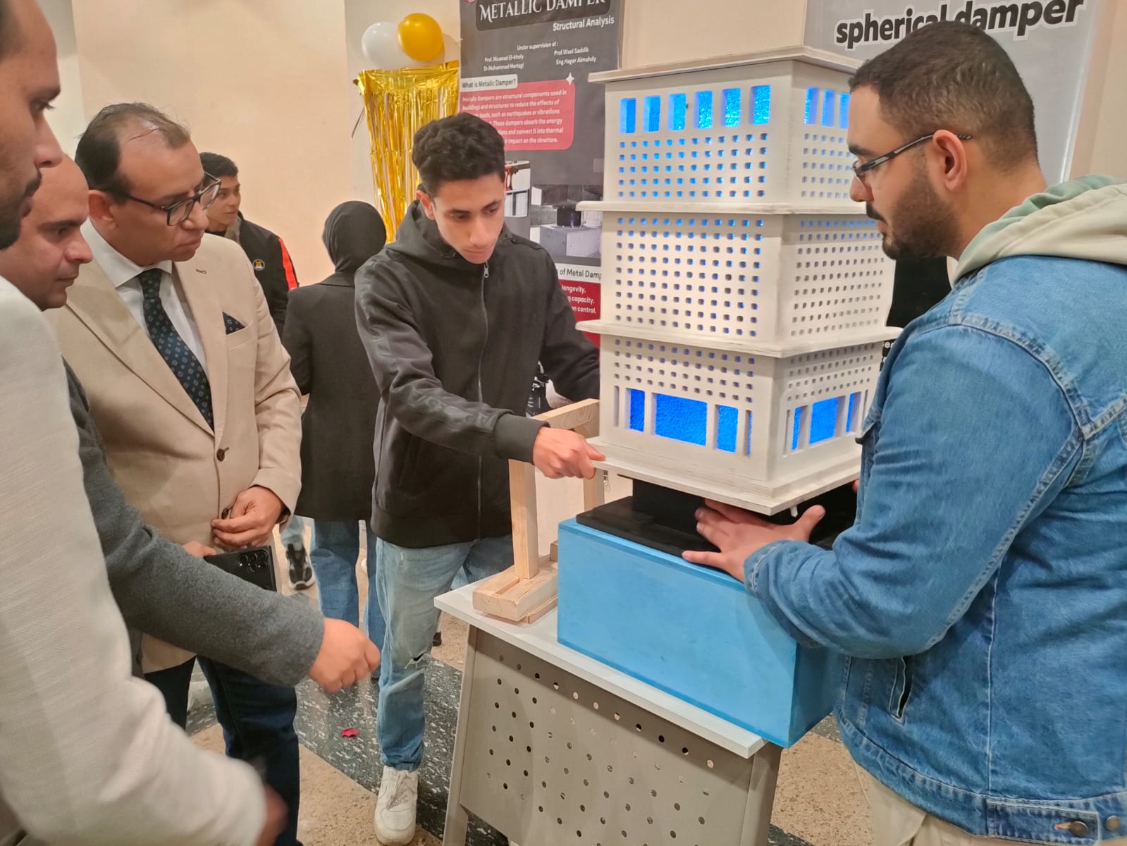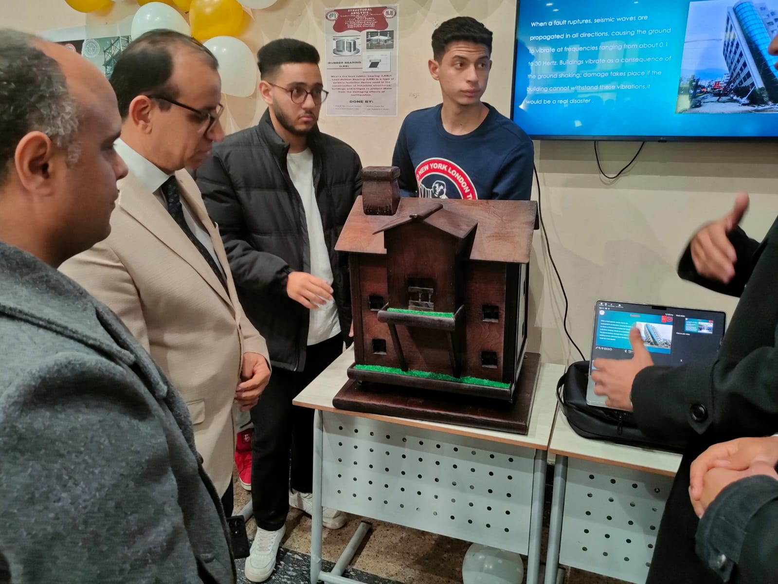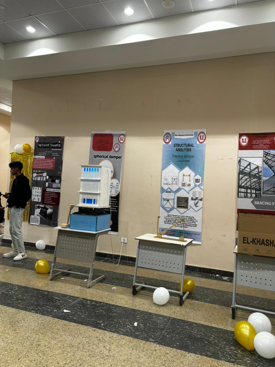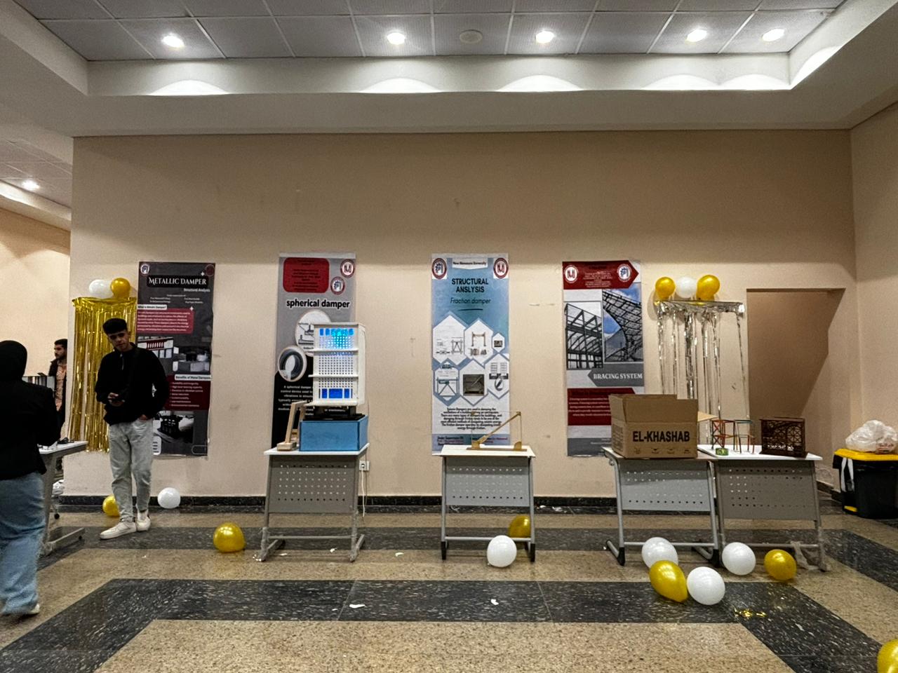 كما صمّم الطلاب بوسترات علمية لكل وسيلة، إلى جانب تقديم عروض توضيحية لآلية عملها ودورها في حماية المنشآت من تأثير الزلازل.