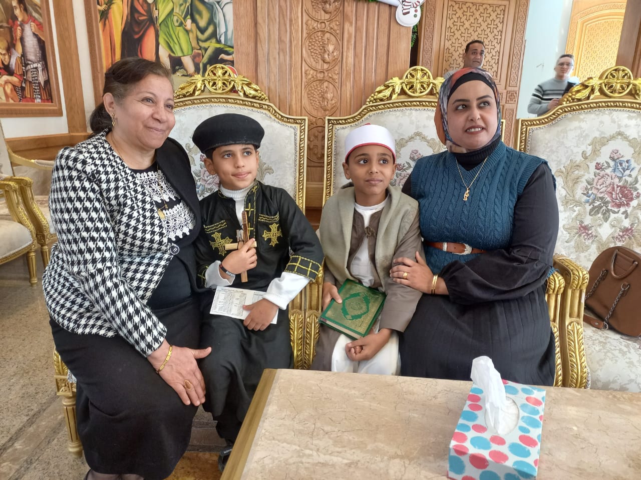 طفل يرتدي زي الأزهر يسرق الأنظار في احتفالات عيد الميلاد بقنا