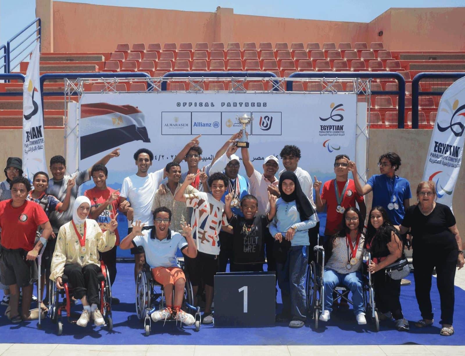 حصل موقع بوابة اتحاد شباب المصريين من الخارج علي عدد من الصور التي تظهر فرحة المشاركين في مراسم تتويج الفائزين في اليوم الأخير من بطولة كأس مصر للسباحة البارالمبية