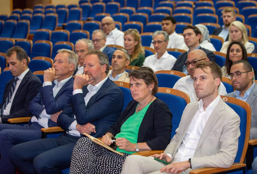 أعقب ذلك حلقة نقاشية أجاب فيها رئيس اقتصادية قناة السويس عن بعض استفسارات أعضاء وفد المؤسسات الهولندية، التي دارت حول خطوات وإجراءات المنطقة نحو التحول الأخضر؛ حيث أوضح جمال الدين أن المنطقة تمتلك بالفعل أول مشروع لإنتاج الوقود الأخضر والذي احتفى بتصدير أول شحنة أمونيا خضراء لدولة الهند بعد 10 أشهر فقط من إنشائه بالتزامن مع قمة المناخ COP27، كما أوضح أن المنطقة قد وقعت عدد من مذكرات التفاهم التي تحول كثير منها لاتفاقات إطارية مع كبرى التحالفات والشركات العالمية المتخصصة في صناعات الطاقة الخضراء؛ والتي تجري الدراسات الفنية حولها لتتحول في أقرب وقت لمشروعات على الأرض تساهم في الهدف العالمي لخفض الانبعاثات الكربونية الضارة.