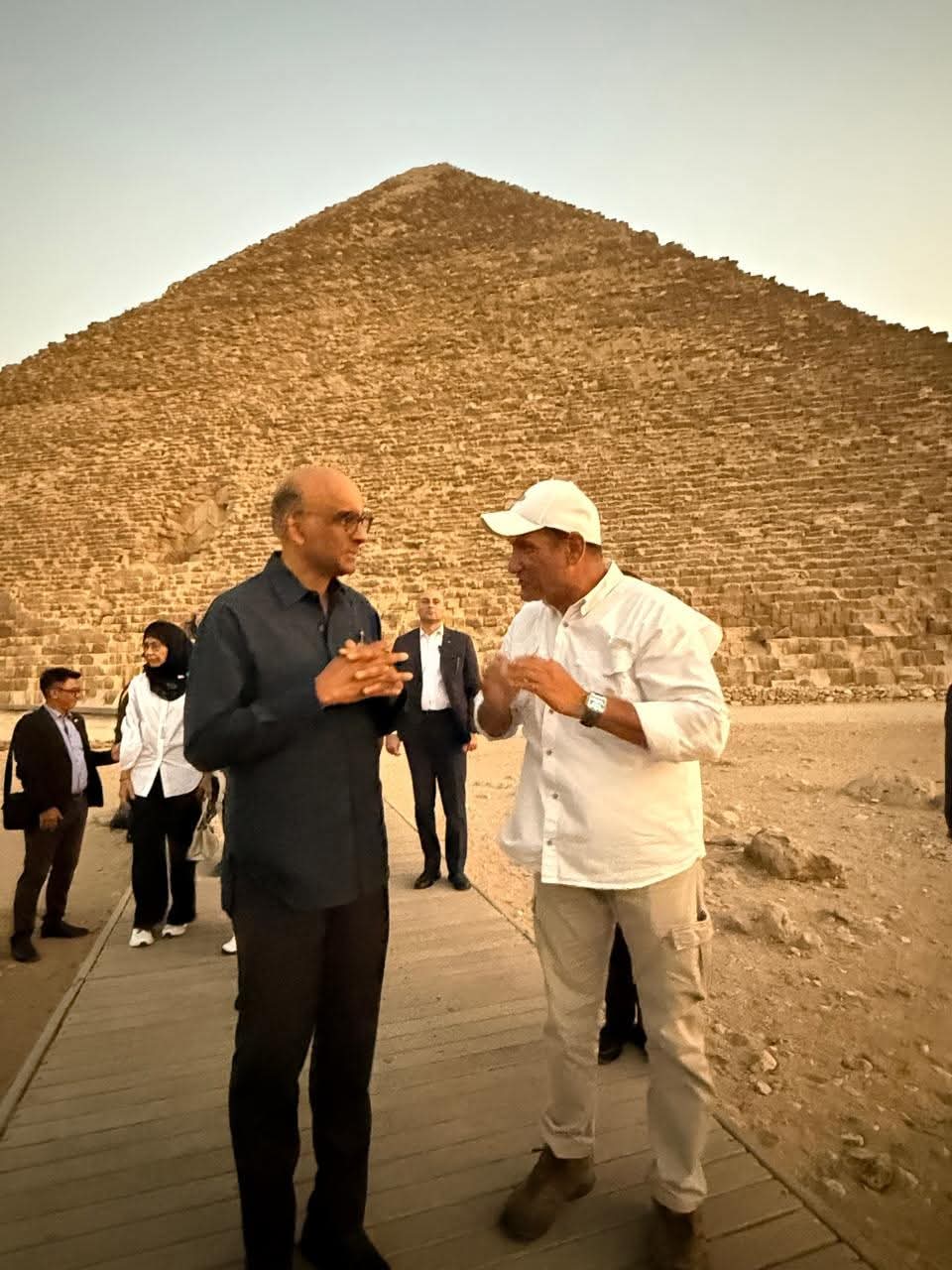 وقد أبدى رئيس سنغافورة إعجابه بعظمة الحضارة المصرية القديمة، وبالفكر الهندسي والمعماري المبدع في بناء الأهرامات، حيث لفتت أنظاره ضخامتها.