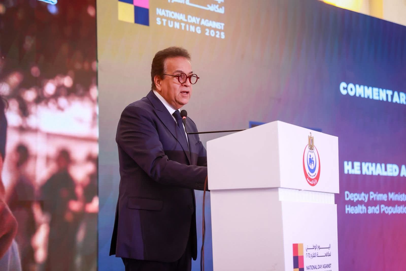 شهد الدكتور خالد عبدالغفار، نائب رئيس مجلس الوزراء ووزير الصحة والسكان، اليوم الأحد، فعاليات احتفالية اليوم الوطني لمكافحة التقزم 2025، تحت شعار «بنمو كل طفل.. تنمو مصر»، لاستعراض الجهود والإنجازات التي حققتها مبادرة الرئيس عبدالفتاح السيسي للكشف المبكر عن أمراض الأنيميا والسمنة والتقزم لدى طلاب المرحلة الابتدائية، وما أسفرت عنه من نتائج ملموسة.