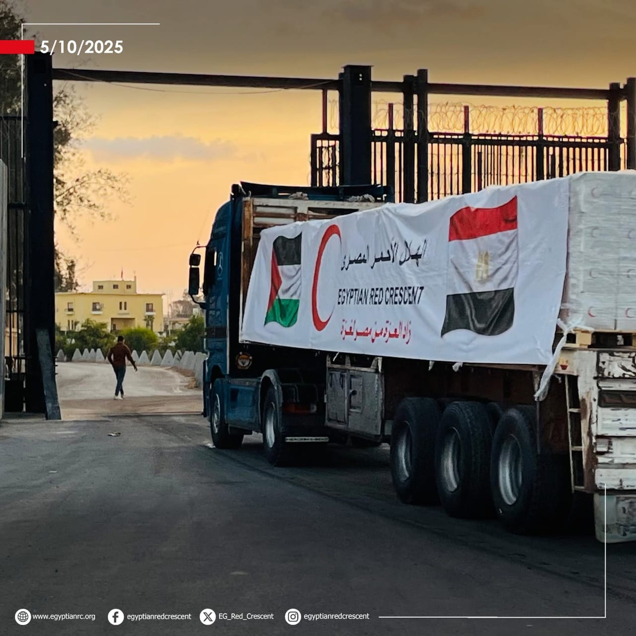 دفع الهلال الأحمر المصري، قافلة « زاد العزة .. من مصر إلى غزة» الـ 45، والتي تحمل عدد من شاحنات المساعدات الإنسانية العاجلة في اتجاه قطاع غزة، وذلك في إطار جهوده المتواصلة كآلية وطنية لتنسيق المساعدات إلى غزة.