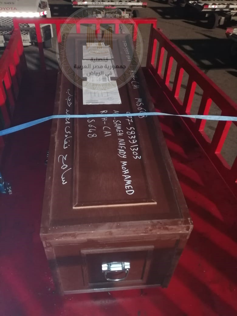 في إطار توجيهات السيد وزير الخارجية والهجرة وشئون المصريين بالخارج بتقديم كل أوجه الرعاية للمواطنين المصريين في الخارج، قامت قنصلية جمهورية مصر فى الرياض بالتنسيق مع الجهات المختصة فى المملكة العربية السعودية اليوم 7 الجاري بإنهاء إجراءات نقل جثمان المواطن المصري / سامح نفادي محمد حجاج، إلى أرض الوطن الذى توفي يوم الجمعه الموافق 3 أكتوبر 2025 نتيجة حادث انحراف مركبة أمنية وسقوطها من أعلي جسر أثناء أداء مهامها فوق سيارة المواطن.
