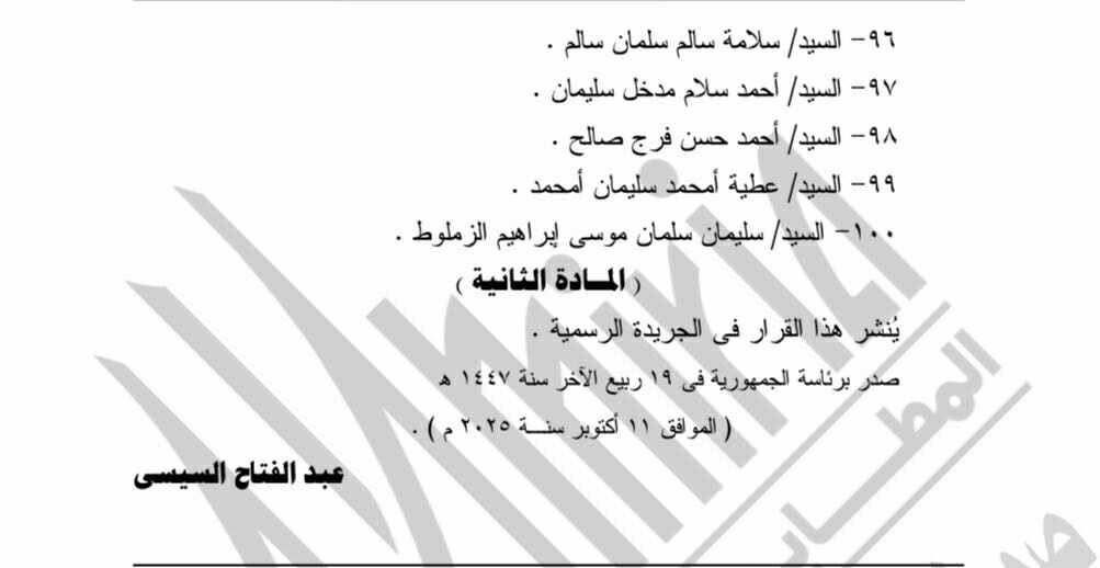 أصدر الرئيس عبد الفتاح السيسي قرارا جمهوريا بتعيين 100 عضو في مجلس الشيوخ . والمعينون هم:
