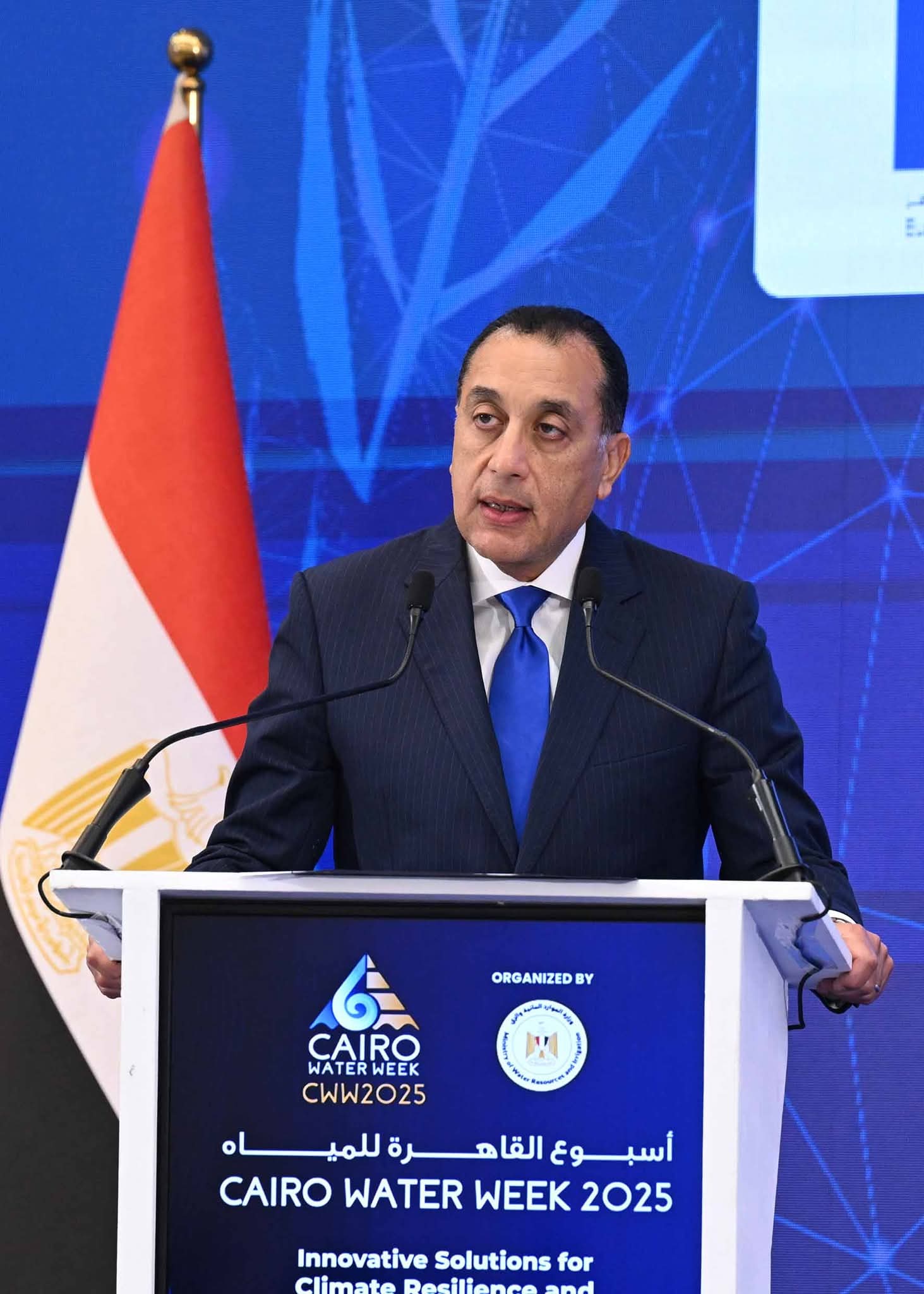 القي الدكتور مصطفى مدبولي، رئيس مجلس الوزراء، مساء اليوم، كلمة خلال فعاليات الجلسة الختامية من “أسبوع القاهرة الثامن للمياه” تحت عنوان “حلول مبتكرة للتكيف مع تغير المناخ واستدامة المياه”، المُنعقد تحت رعاية فخامة السيد الرئيس عبدالفتاح السيسي، رئيس الجمهورية، خلال الفترة من 12 إلى 16 أكتوبر الجاري.