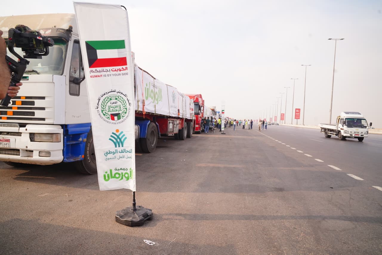 نجحت جمعية الأورمان بالتعاون مع المكتب الكويتي للمشروعات الخيرية بالقاهرة فى تنظيم قافلة مساعدات إنسانية لتقديم الدعم الفورى للأشقاء الفلسطينيين بقطاع غزة، وذلك من خلال اصطفاف 40 شاحنة محملة بالمواد الغذائية والدقيق والبطاطين، وذلك بالتعاون مع مئات المتطوعين وبالتنسيق مع التحالف الوطني للعمل الأهلي التنموي.