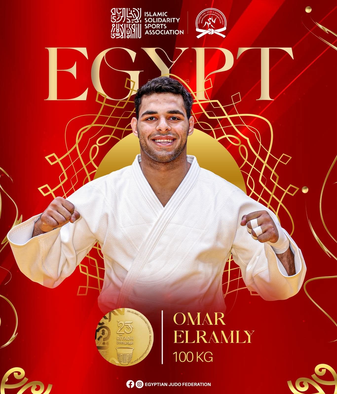 هنأ الدكتور أشرف صبحي، وزير الشباب والرياضة، الاتحاد المصري للجودو برئاسة محمد مطيع، واللاعب عمر الرملي، بعد تتويجه بأول ميدالية ذهبية لمصر في بطولة الجودو ضمن منافسات دورة ألعاب التضامن الإسلامي المقامة بالعاصمة السعودية الرياض.