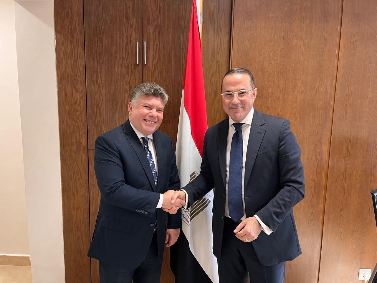 التقي السيد السفير خالد انيس مساعد وزير الخارجية للتعاون الدولي للتنمية بالدكتور باتريك جان، ممثل المكتب الإقليمي لمنظمة الأمم المتحدة للتنمية الصناعية، والسيدة نائبته.