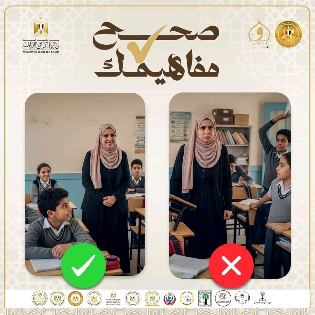 نشرت وزارة الأوقاف منشورًا جديدًا على صفحاتها الرسمية بمواقع التواصل الاجتماعي، ضمن صحح مفاهيمك، بعنوان: “احترام المعلم وتقديره خُلق أصيل من أخلاق الإسلام، وركن أساسي في بناء شخصية الطالب ونجاحه العلمي والسلوكي”.