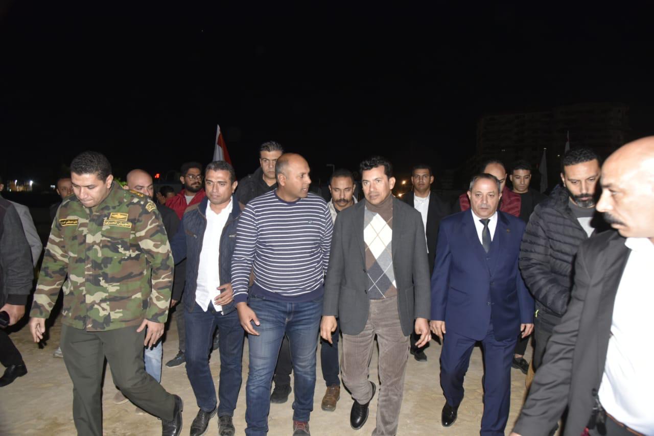 وزير الرياضة ومحافظ بورسعيد يتفقدان استاد النادي المصري الجديد للوقوف على آخر الاستعدادات قبل الافتتاح