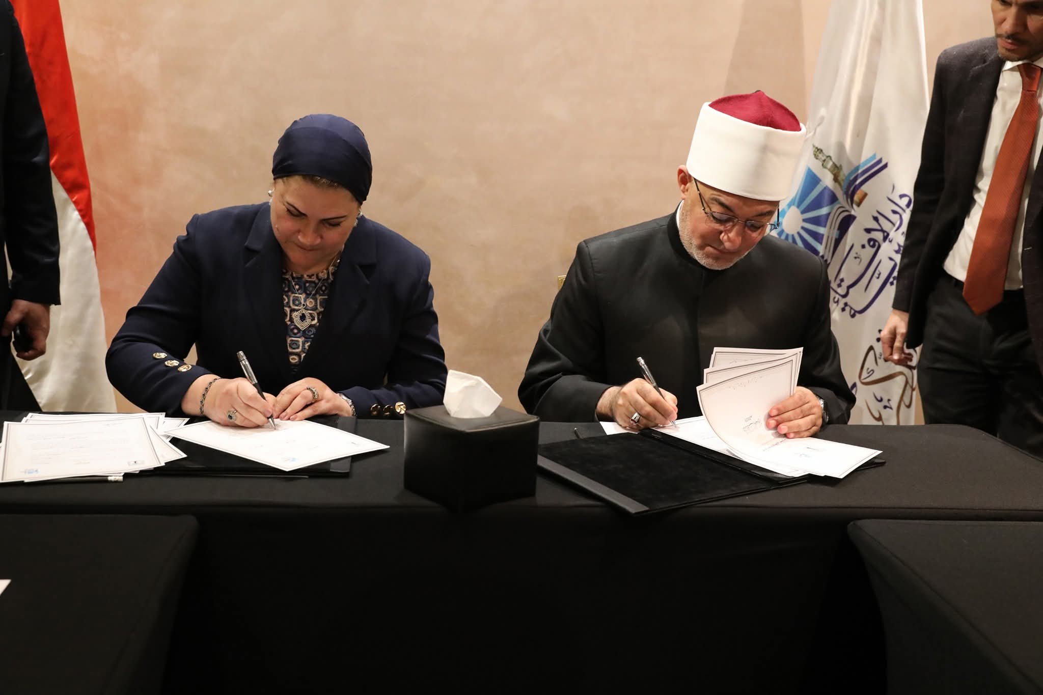 وقّع أ.د. نظير محمد عياد، مفتي الديار المصرية، والسيد محمد عبد اللطيف وزير التربية والتعليم والتعليم الفني، مذكرة تفاهم، اليوم الثلاثاء بمقر دار الإفتاء؛ بهدف محو الأمية الدينية وترسيخ الفكر الوسطي ومواجهة كافة أشكال الغزو الثقافي والفكري التي تستهدف الهوية.