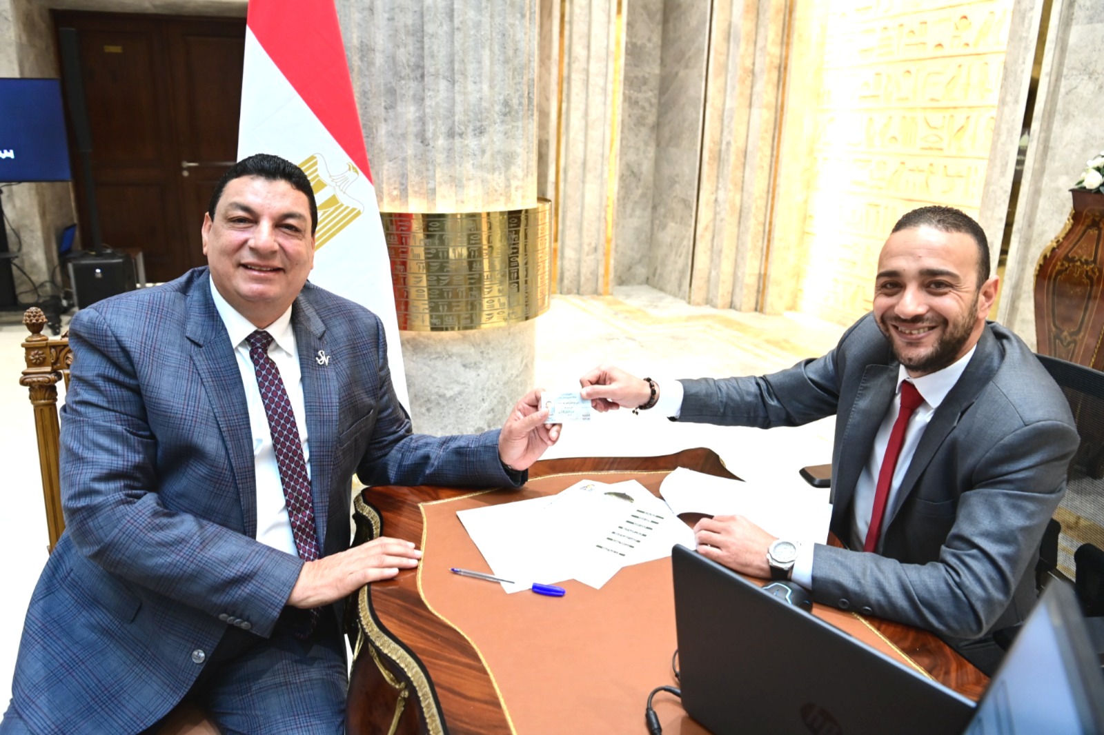 صرح المستشار أحمد مناع، الأمين العام لمجلس النواب، بأن الأمانة العامة للمجلس انتهت اليوم الإثنين ٥ يناير من تسليم عدد ١٥٢ نائباً من النواب السابق إعلان فوزهم من الهيئة الوطنية للانتخابات، كارنيهات العضوية وقاموا باستيفاء كافة بيانات العضوية، ليصل إجمالي عدد النواب الذين تسلموا كارنيهات العضوية اليوم وأمس إلى ٣١٥ نائباً، وأشار الأمين العام أن النواب الذين تسلموا كارنيهات العضوية اليوم من السابق إعلان فوزهم بنظامي الفردي والقائمة عن محافظات الغربية، كفر الشيخ، الجيزة، الفيوم، بني سويف، المنيا، أسيوط، الوادي الجديد، سوهاج.