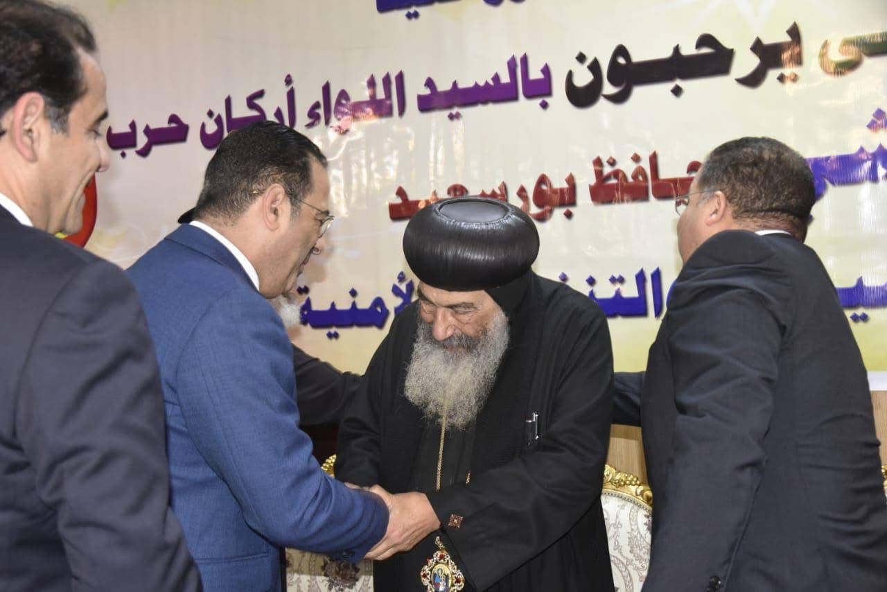 ومن جانبه، رحب نيافة الأنبا تادرس مطران بورسعيد بالحضور، معربًا عن سعادته بهذه الأجواء التي تعكس عمق المحبة بين أبناء الوطن الواحد، مشيرًا إلى الدروس الإنسانية المستفادة من هذه المناسبة العظيمة، ومتمنيًا لمحافظ بورسعيد والقيادات التنفيذية التوفيق في استكمال مشروعات التنمية لتكون بورسعيد نموذجًا يحتذى به.