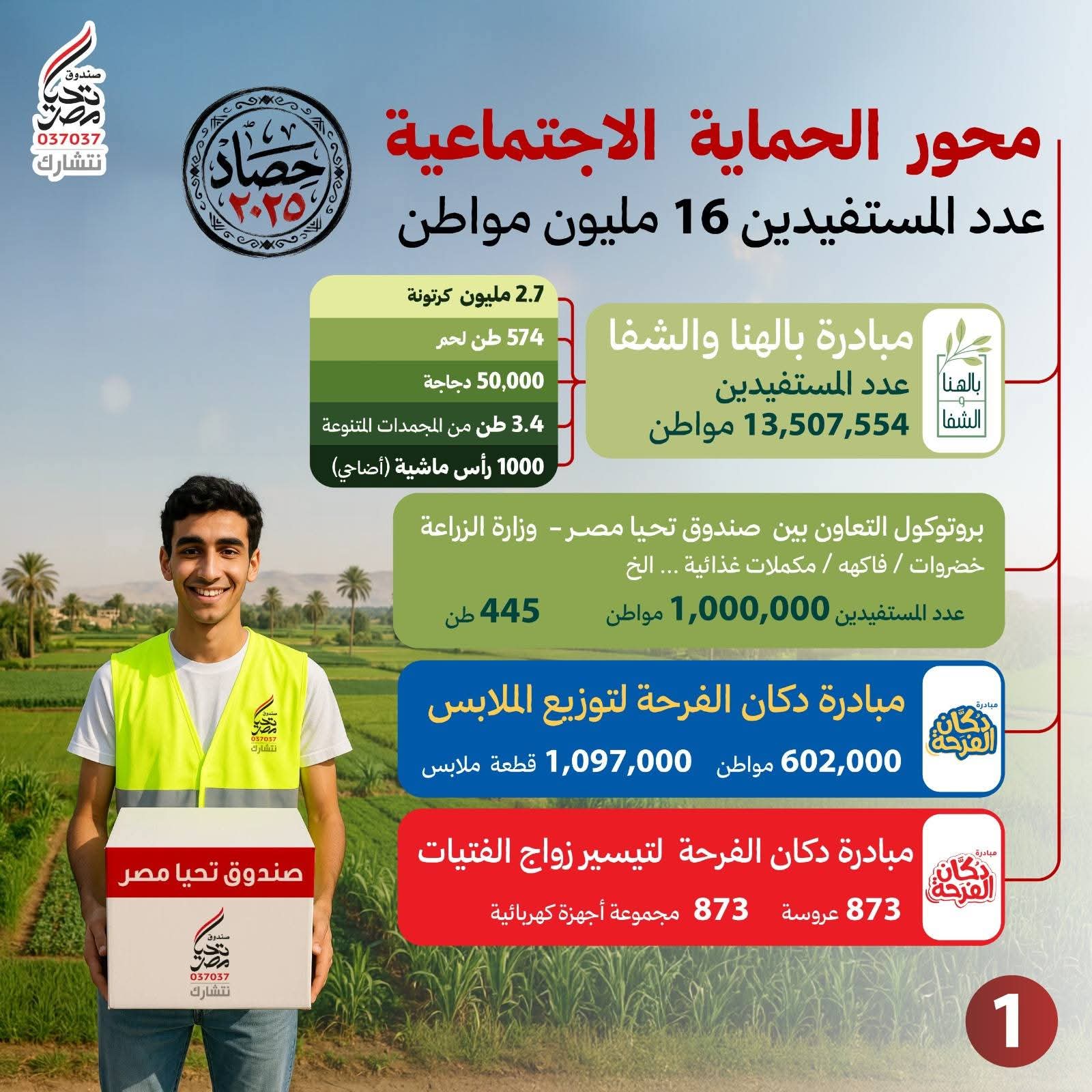 في إطار تنفيذ توجيهات السيد الرئيس عبد الفتاح السيسي، شهد عام 2025 توسعًا كبيرًا في المبادرات والقوافل النوعية التي نفذها صندوق تحيا مصر، مستهدفة تقديم الدعم للأسر الأولى بالرعاية في المناطق الأكثر احتياجًا على مستوى محافظات جمهورية مصر العربية، وتعزيز جهود الدولة في ترسيخ منظومة الحماية الاجتماعية الشاملة.