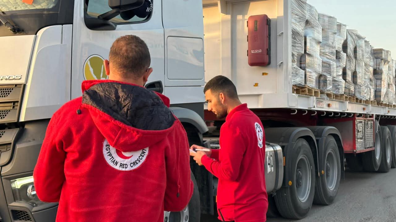 ويتواجد الهلال الأحمر المصري كآلية وطنية لتنسيق وتفويج المساعدات إلى غزة على الحدود منذ بدء الأزمة، حيث لم يتم غلق الجانب المصري من معبر رفح نهائيا، كما واصل تأهبه في كافة المراكز اللوجستية، وكذا جهوده المتواصلة لدخول المساعدات التي بلغت أكثر من 800 ألف طن من المساعدات الإنسانية والإغاثة، وذلك بجهود 65 ألف متطوع بالجمعية.