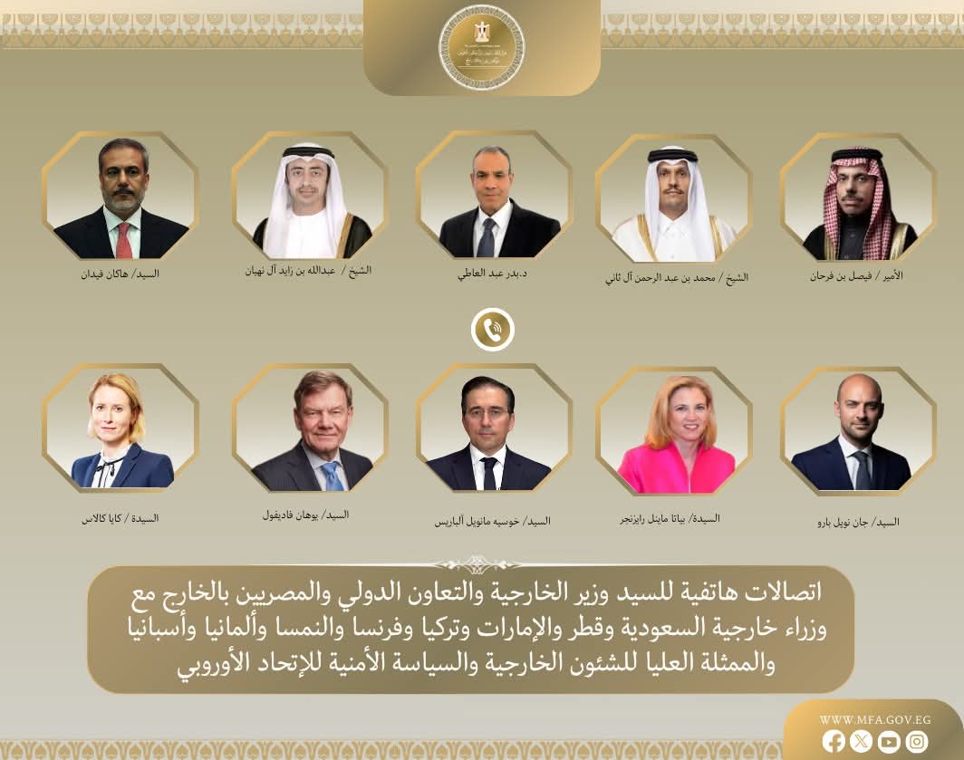 في إطار متابعة وزارة الخارجية والتعاون الدولى والمصريين بالخارج تطورات التصعيد العسكري الراهن في الجمهورية الإسلامية الإيرانية وما ينطوي عليه من تداعيات خطيرة على أمن واستقرار المنطقة والسلم والأمن الدوليين، تلقّى د. بدر عبد العاطى وزير الخارجية والتعاون الدولي والمصريين بالخارج كما أجرى اتصالات مكثفة مع عدد من الوزراء العرب والأوروبيين شملت وزراء خارجية كلٍ من المملكة العربية السعودية ودولة قطر والإمارات العربية المتحدة والجمهورية التركية والجمهورية الفرنسية وجمهورية ألمانيا الاتحادية والنمسا وإسبانيا، فضلاً عن الممثلة العليا للشئون الخارجية والسياسة الأمنية للاتحاد الأوروبي، وذلك لمتابعة تطورات الأوضاع المقلقة في إيران والتشاور بشأن سبل دعم جهود خفض التصعيد واحتواء التوتر في المنطقة.