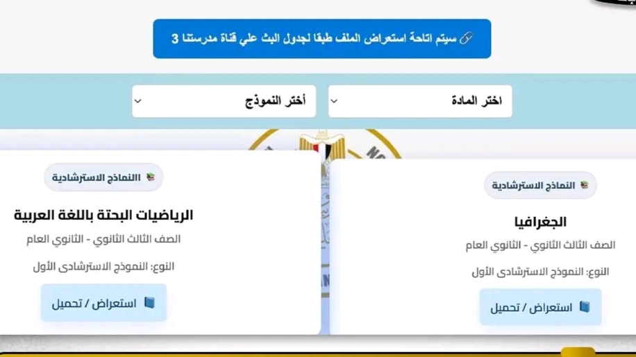 وفي سياق متصل، أشارت الوزارة إلى أنه سيتم تقديم شروحات وحلول تفصيلية لهذه النماذج عبر قناة مدرستا 3، من خلال حلقات تُذاع يوميًا في تمام الساعة 10 مساءً، على أن تكون الإعادة في الساعة 12 ظهر اليوم التالي، بما يضمن إتاحة الفرصة لأكبر عدد من الطلاب للاستفادة.