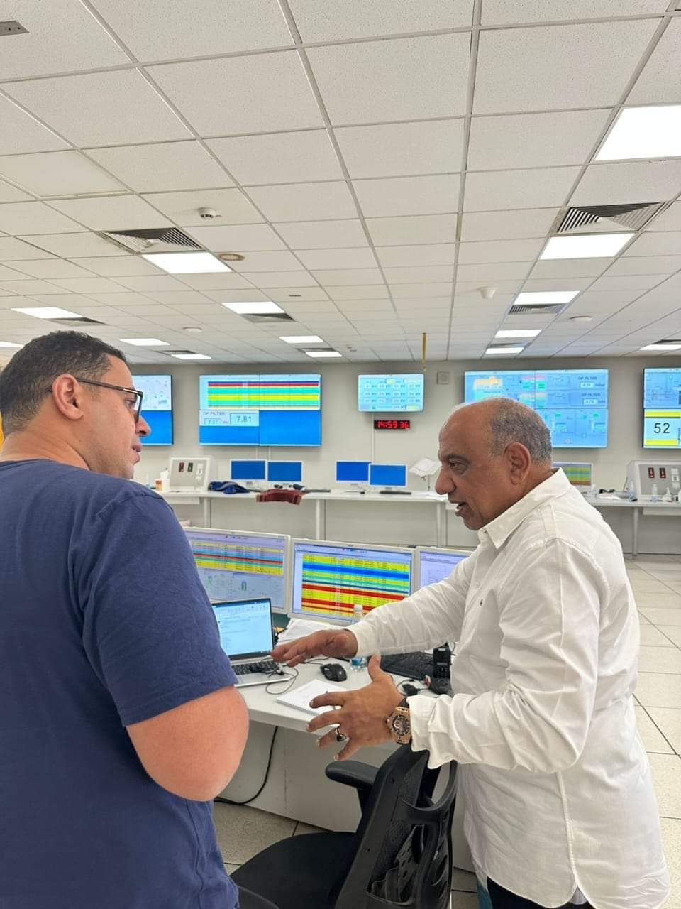 تفقد الدكتور محمود عصمت القطاعات المختلفة داخل المحطة والتي تعد من أكبر المحطات فى الشرق الأوسط اعتمادا على تبريد الهواء من خلال مكثفات التبريد ، والأعلى كفاءة والأقل استهلاكا للوقود بما يعادل ١٥١ جم / كيلووات ساعة، وهو ما يساهم فى خفض معدلات استهلاك الوقود، وتعتمد الشبكة القومية للكهرباء في التشغيل على محطات سيمنس العملاقة وتحصل منها على مايقرب من ٣٥٪ من إجمالي الطاقة المولدة بالشبكة، شملت الجولة تفقد وحدات التوليد الغازية والوحدات البخارية، وكذلك الغلايات وأنظمة التبريد الهوائي التى تعد الأولى من نوعها فى مصر، وتم تفقد مركز التحكم الخاص بالمحطة حيث استمع الدكتور عصمت إلى شرح تفصيلي من مسئولي التشغيل حول الكفاءة الإنتاجية والقدرات التوليدية للوحدات ومعدلات الوفر فى استهلاك الوقود وأكواد التشغيل وأنظمة الحماية المختلفة لضمان الكفاءة العالية فى ظل موجات الحرارة العالية.