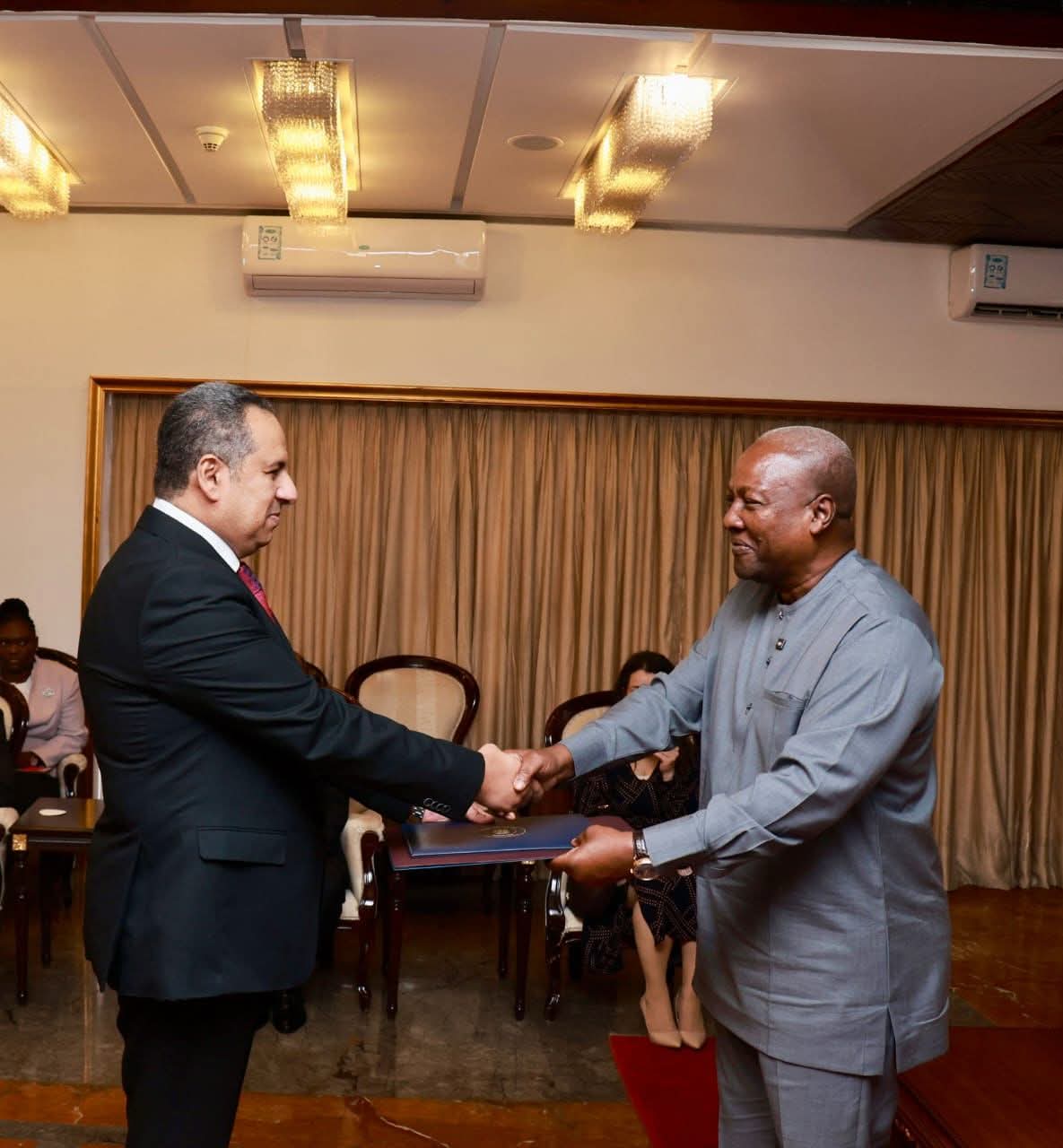 قدم السفير وائل فتحي، سفير جمهورية مصر العربية لدى غانا، أوراق اعتماده إلى رئيس الدولة، جون مهاما في مراسم جرت بقصر الرئاسة صباح أمس الجمعة، حيث نقل السفير تحيات الرئيس عبد الفتاح السيسي لنظيره الغاني. وقد تطرق الحوار إلى تنامي العلاقات الثنائية بين البلدين وحرص مصر على نقل تجربتها التنموية لأشقائها الأفارقة ومن بينهم غانا التي تجمعها بمصر علاقات تاريخية ممتدة.