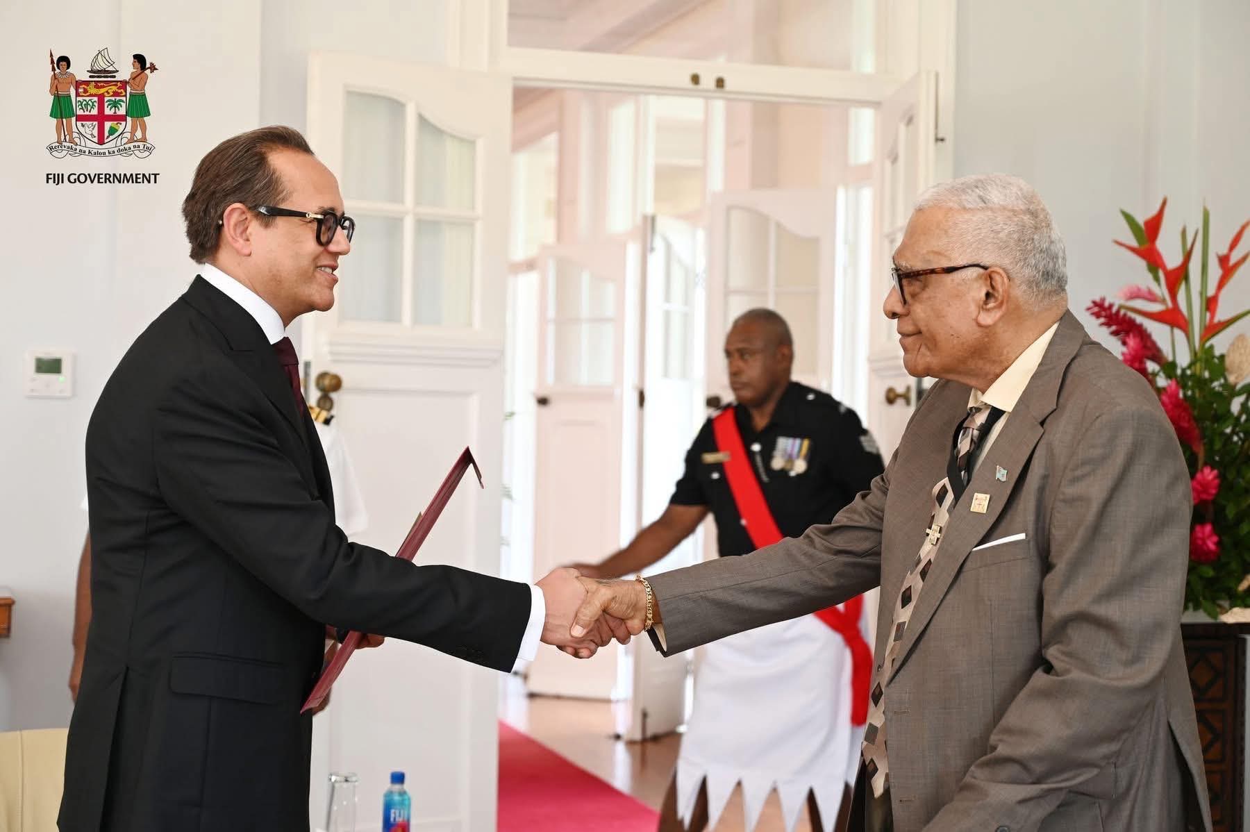 قدم السفير هانئ ناجي سفير جمهورية مصر العربية لدى استراليا بتقديم أوراق اعتماده سفيراً غير مقيم لدى حكومة جمهورية فيجي إلى السيد ناياكا لالابالافو رئيس الجمهورية، وذلك خلال مراسم رسمية أُقيمت بالقصر الرئاسي، تضمنت استعراض حرس الشرف وعزف السلام الوطني ورفع العلم المصري.