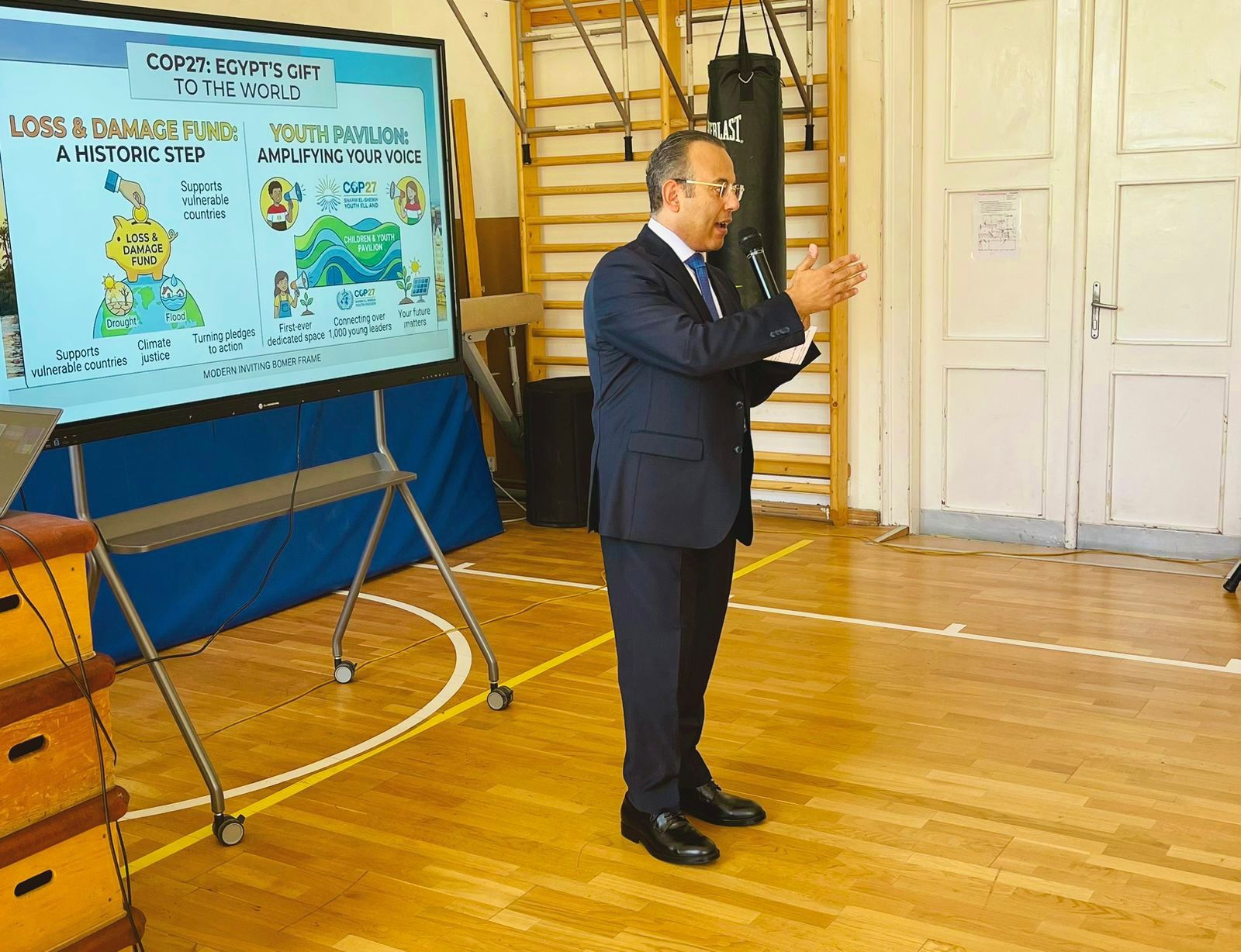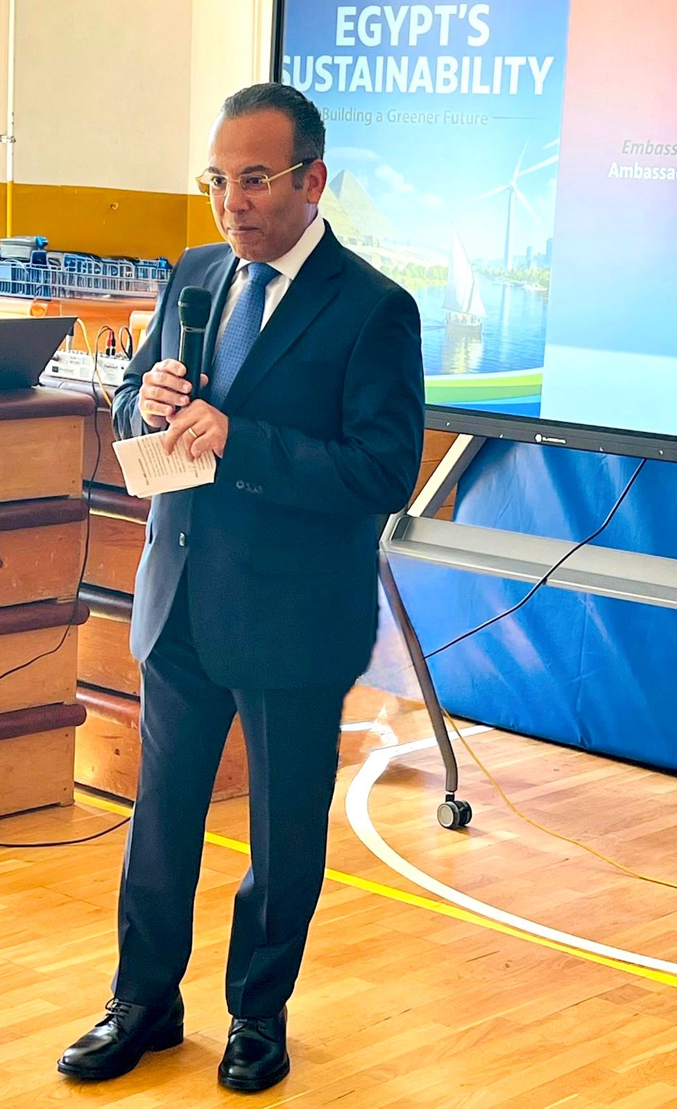 بأسلوب تفاعلي نابض بالحيوية، قدم السفير رؤية مصر لقضايا تغير المناخ، لا كخطاب نظري، بل كتجربة دولة تواجه التحدي وتعيد صياغة معادلة التوازن بين التنمية وحماية البيئة.