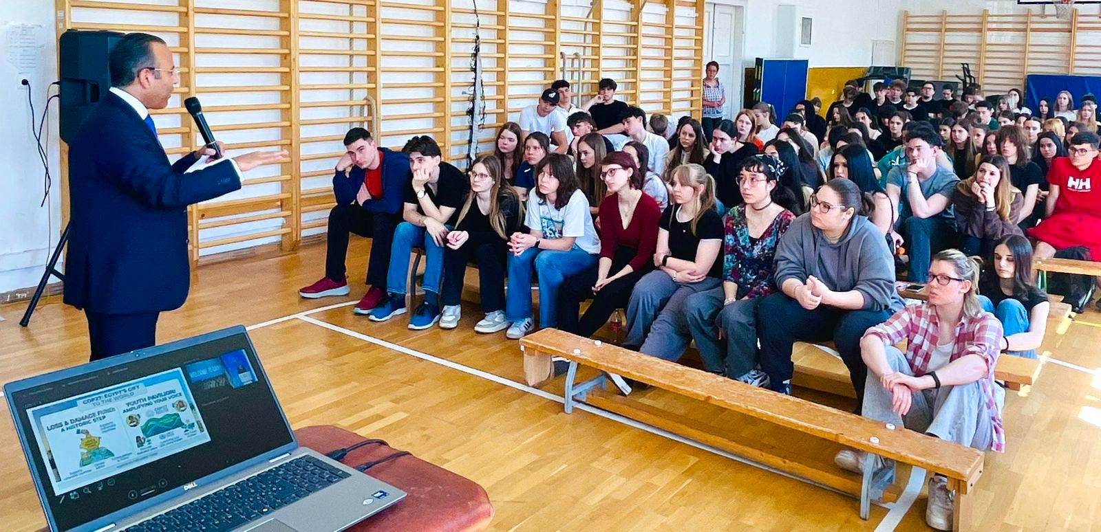 في قاعة دراسية هادئة بإحدى المدارس المجرية، لم تكن المحاضرة مجرد درس عابر، بل نافذة مفتوحة على عالم يتقاطع فيه المناخ بالدبلوماسية، والمعرفة بالفعل. هناك، اختار السفير د. أحمد فهمي سفير مصر لدى المجر أن يخاطب عقولا شابة بلغة المستقبل، ضمن مشاركة السفارة المصرية في بودابست في فعاليات “أسبوع الاستدامة” وبرنامج “Green Bridge”.