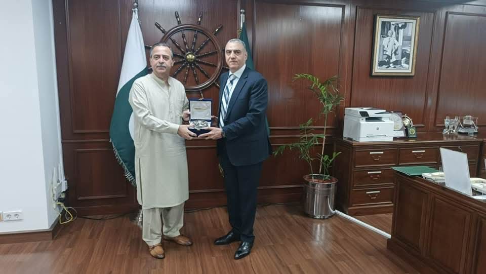 التقى السفير د. إيهاب عبد الحميد، سفير جمهورية مصر العربية لدى جمهورية باكستان الإسلامية، محمد جنيد، وزير الموارد البحرية الباكستاني وذلك في إطار تعزيز التعاون الثنائي بين البلدين، واستكشاف آفاق جديدة للشراكة في مجالات الموانئ والنقل البحري.