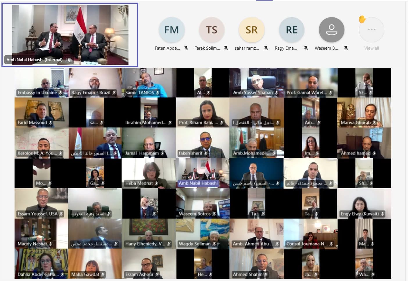 في هذا السياق، استهل الصالون الثقافي للمصريين بالخارج، لقاءه الأول، باستضافة السيد وزير الخارجية والهجرة وشئون المصريين بالخارج، حيث أدار اللقاء السفير نبيل حبشى نائب وزير الخارجية والهجرة وشئون المصريين بالخارج، وذلك في حوار مفتوح مع عدد من أعضاء الجاليات المصرية المقيمين بالخارج، كما شارك السادة رؤساء البعثات الدبلوماسية والقنصلية بالخارج في حضور الصالون الثقافى.