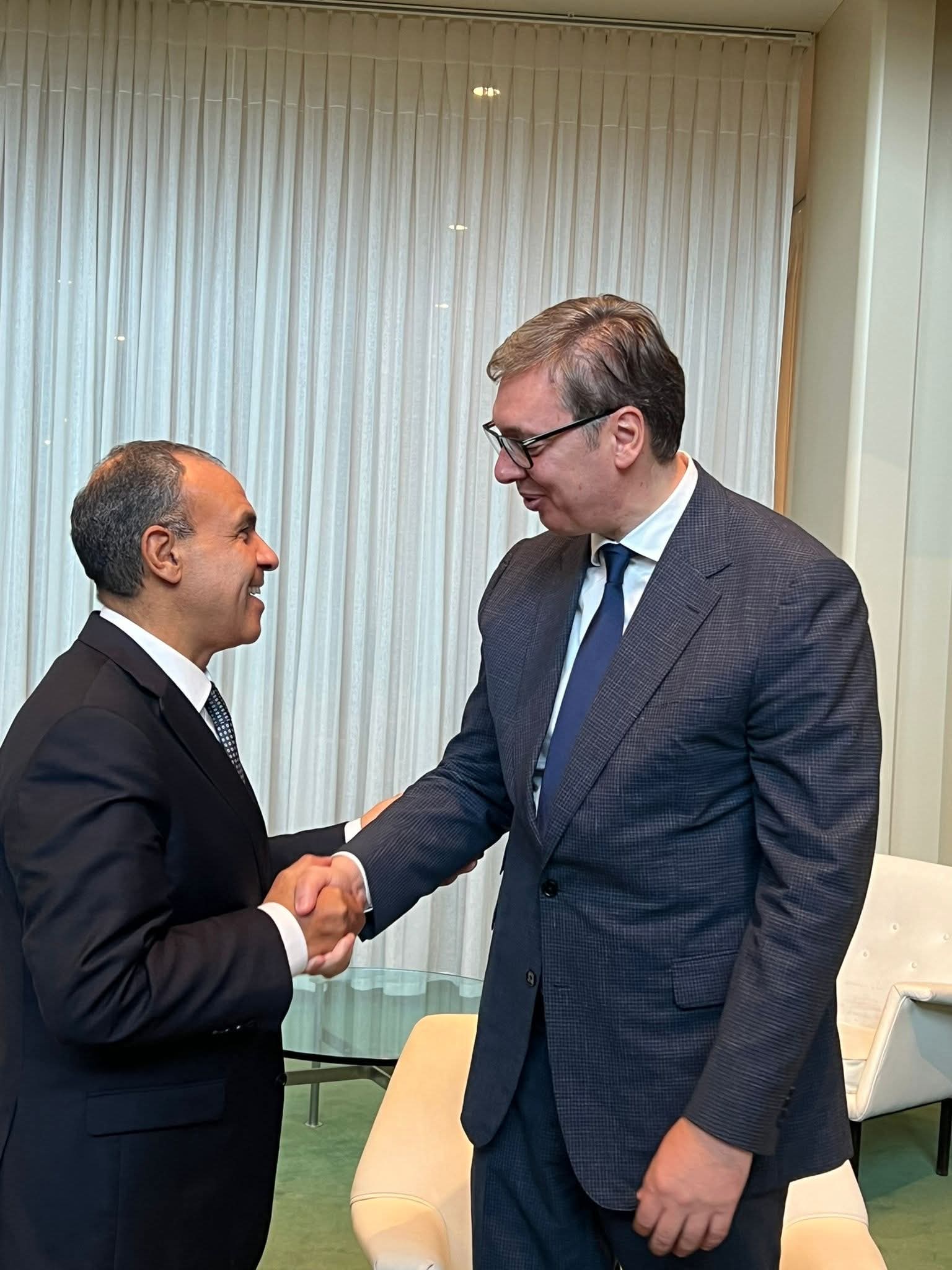 التقى د. بدر عبد العاطي وزير الخارجية والهجرة وشئون المصريين بالخارج، اليوم الخميس ٢٥ سبتمبر ٢٠٢٥، الرئيس ألكسندر فوتشيتش رئيس جمهورية صربيا، وذلك على هامش أعمال الشق رفيع المستوى للدورة الثمانين للجمعية العامة للأمم المتحدة في نيويورك.